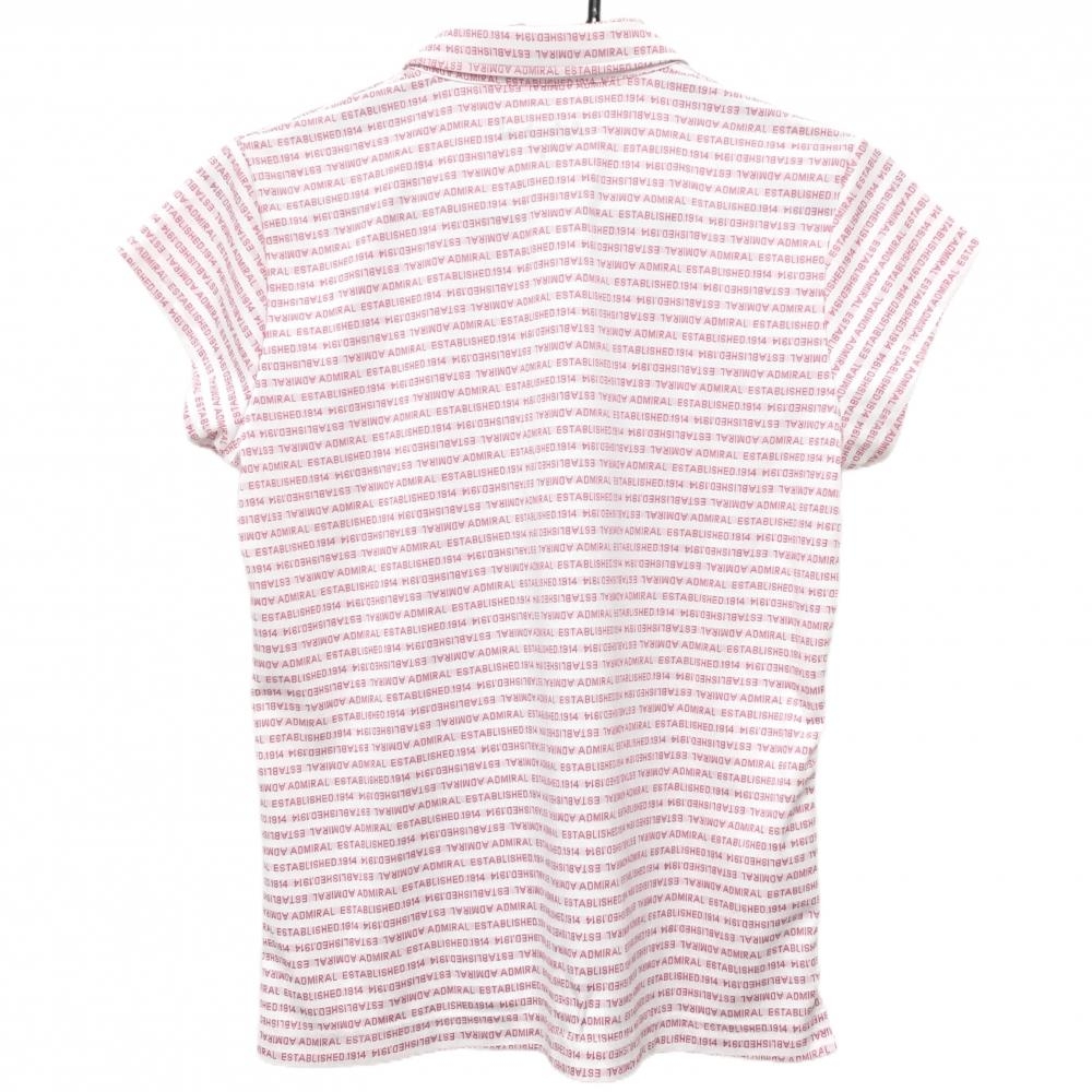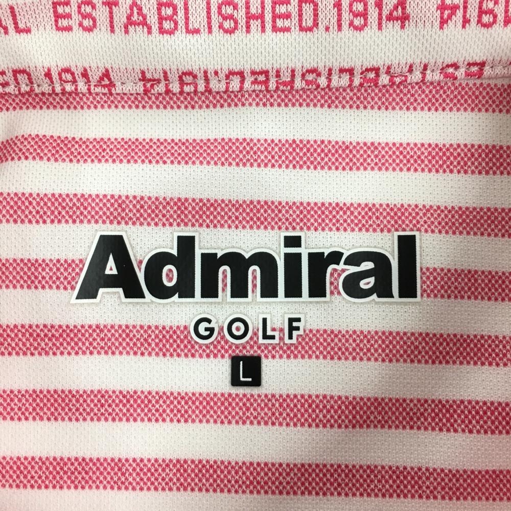 【超美品】アドミラル 半袖ポロシャツ 白×ピンク ボーダー 英字総柄 胸元ロゴ レディース L ゴルフウェア Admiral