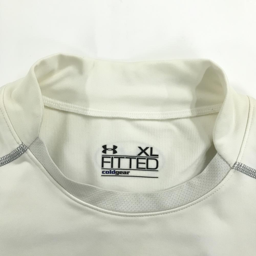 アンダーアーマー 長袖ハイネックシャツ 白×グレー 一部メッシュ コールドギア メンズ XL ゴルフウェア UNDER ARMOUR