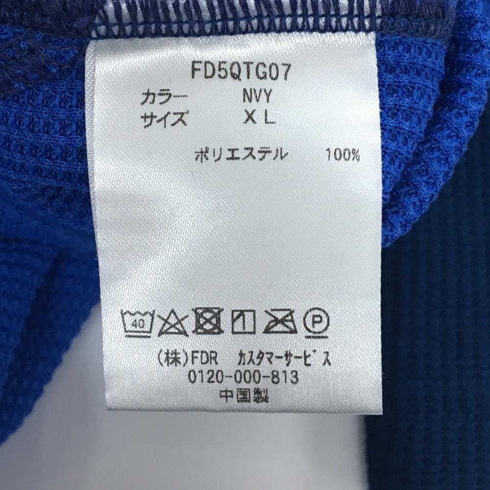 【超美品】フィドラ 長袖ハイネックシャツ ネイビー×ブルー 胸元ライン メンズ XL/TG ゴルフウェア FIDRA