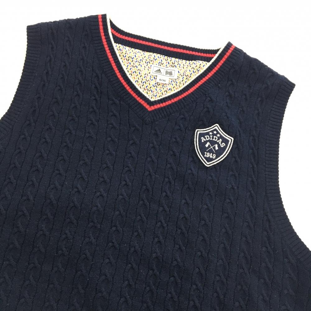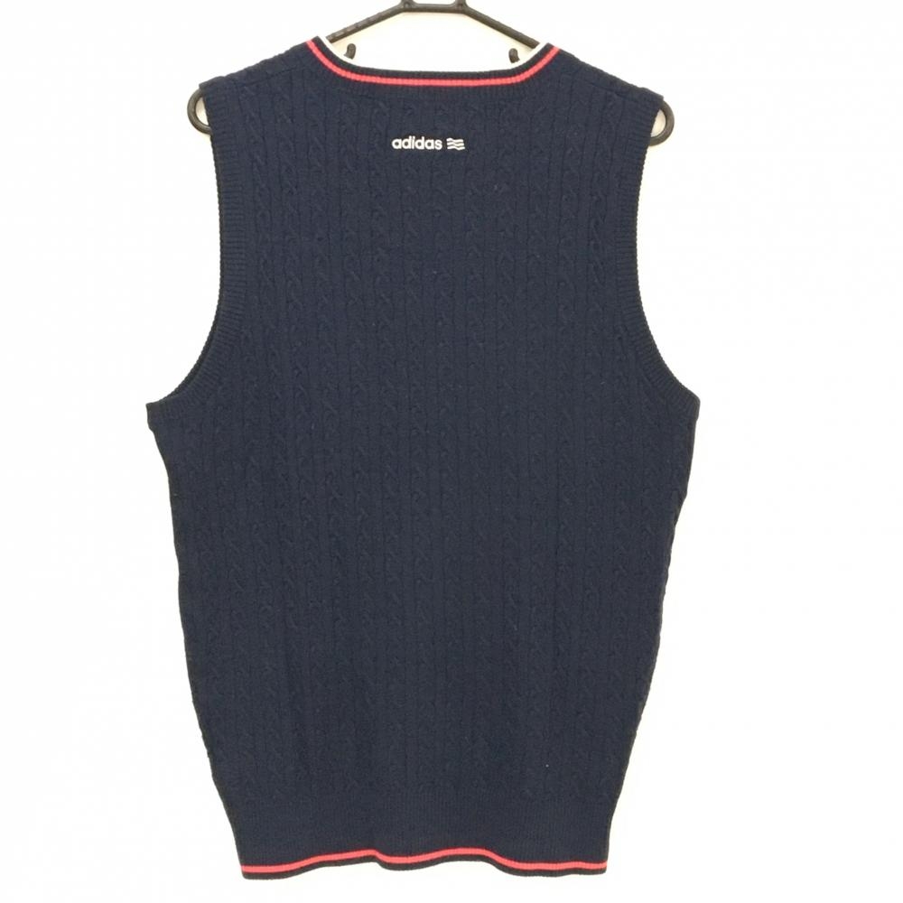 アディダス ニットベスト ネイビー×ピンク ケーブル編み Vネック ウール混 メンズ O/XG ゴルフウェア adidas