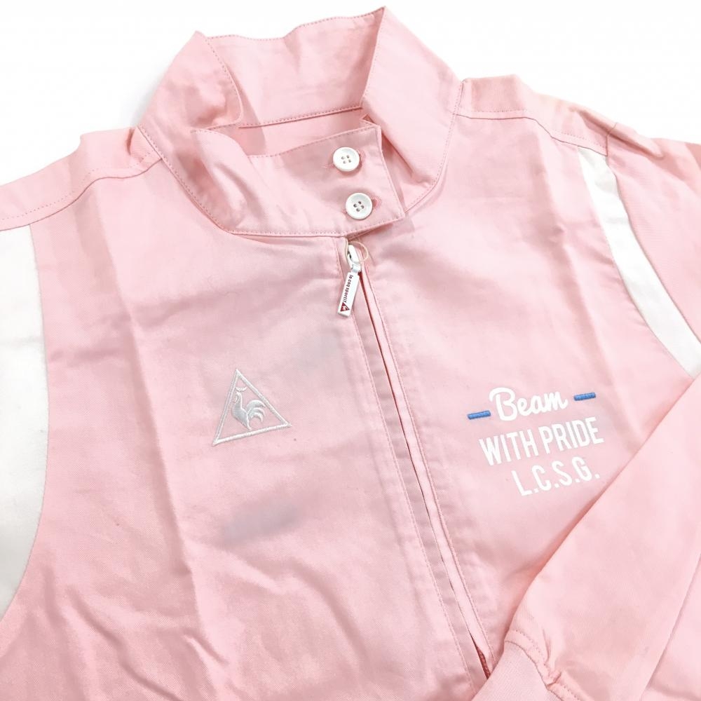 ルコックゴルフ ジャケットブルゾン ピンク×白 背面英字 紙タグ付 レディース LL ゴルフウェア le coq sportif