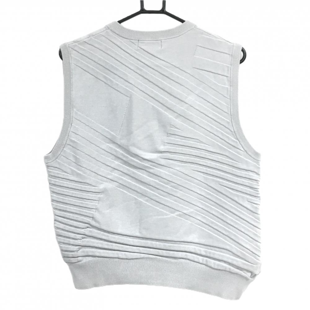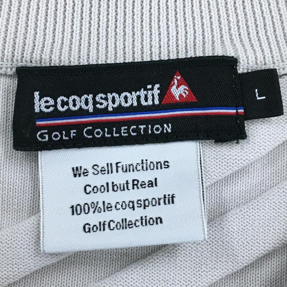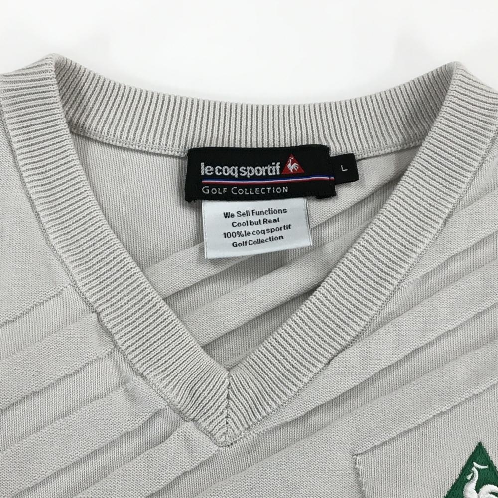 【美品】ルコックゴルフ ニットベスト ライトグレー ロゴグリーン 凹凸生地 コットン100% レディース L ゴルフウェア le coq sportif
