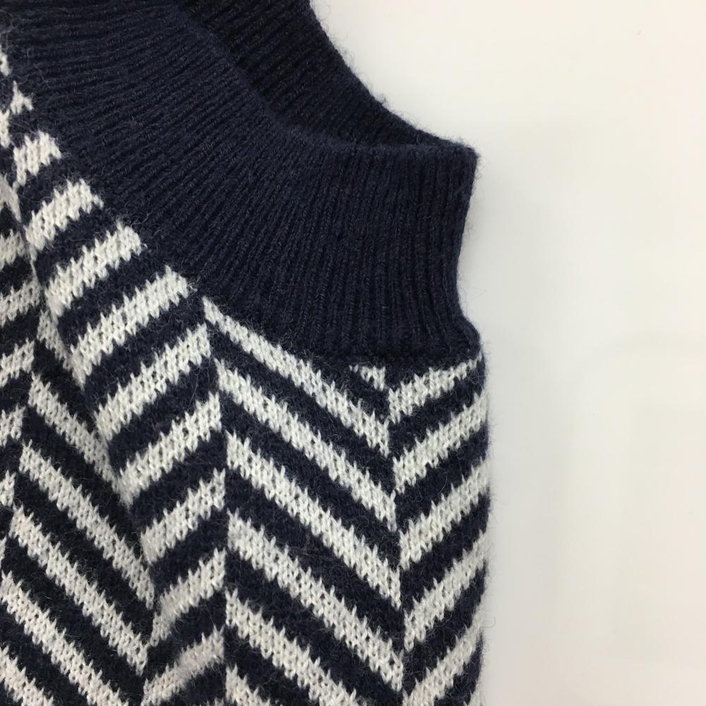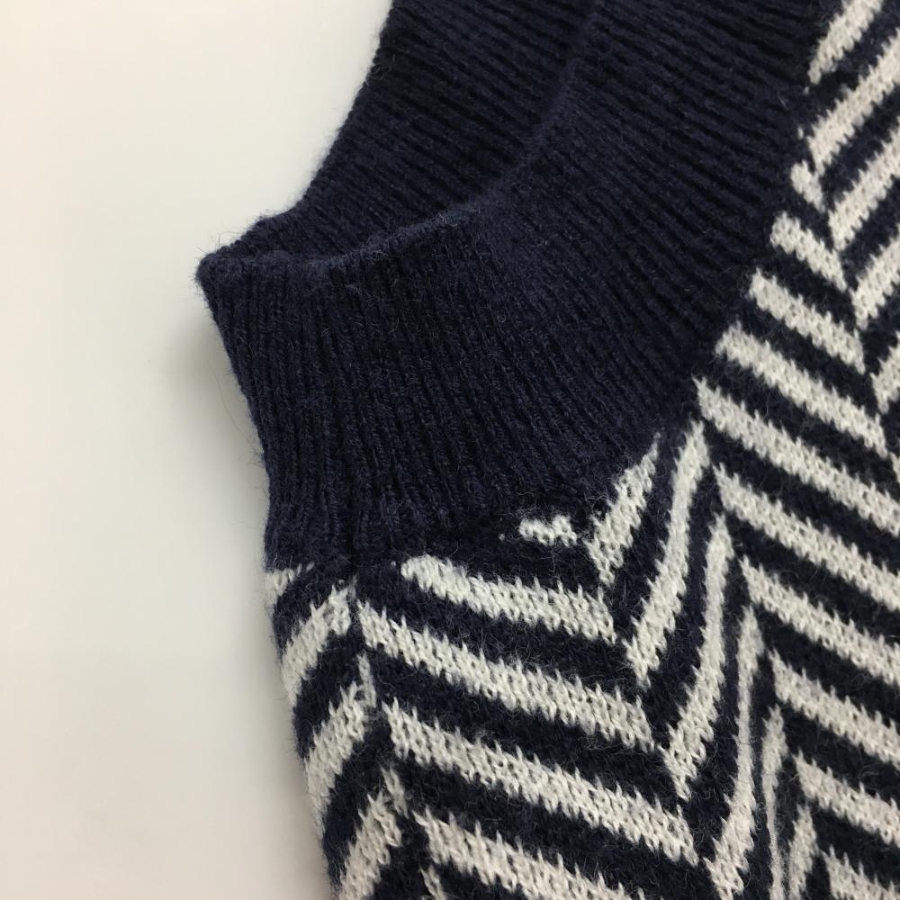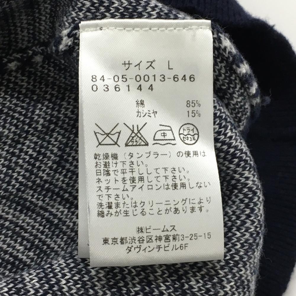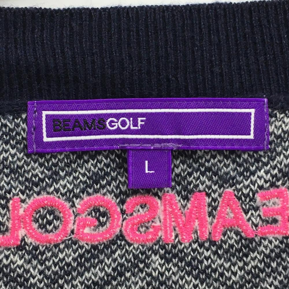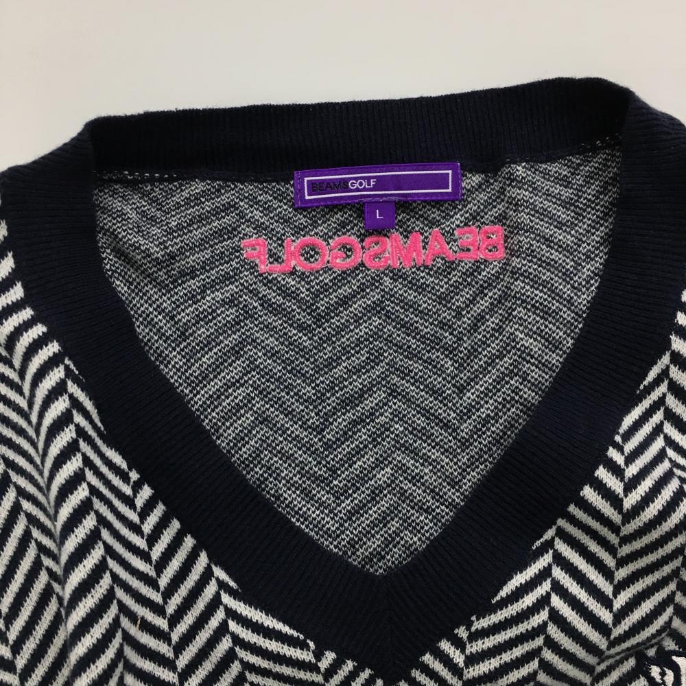 【美品】ビームスゴルフ ニットベスト ネイビー×白 Vネック ヘリンボーン メンズ L ゴルフウェア BEAMS GOLF