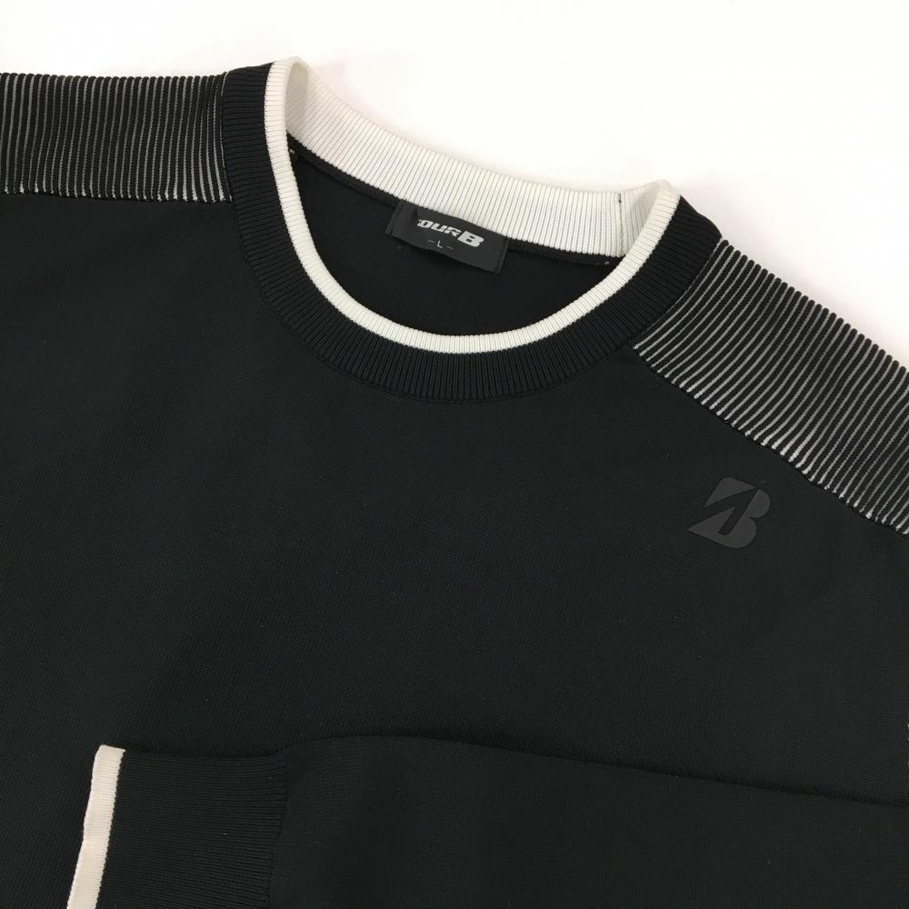 【超美品】ブリヂストンTOURB セーター 黒×白 肩ストライプ調 ポリエステル100% ニット メンズ L ゴルフウェア Bridgestone