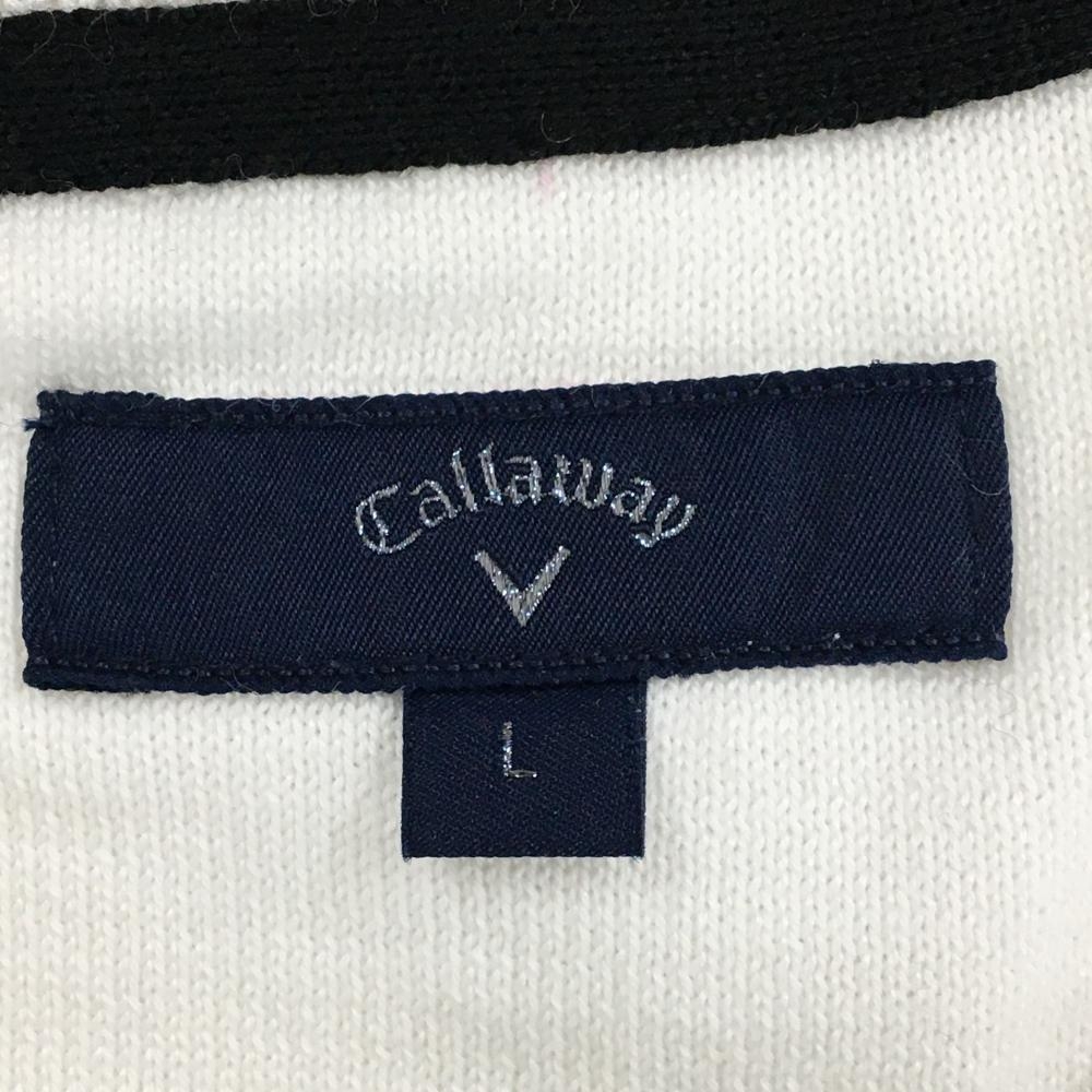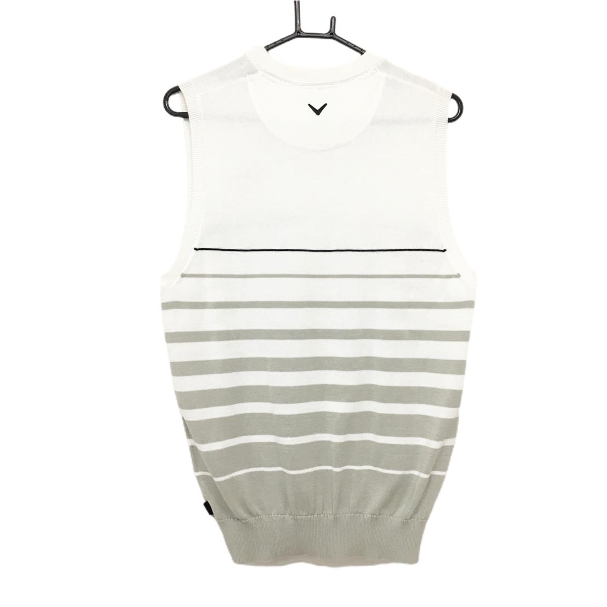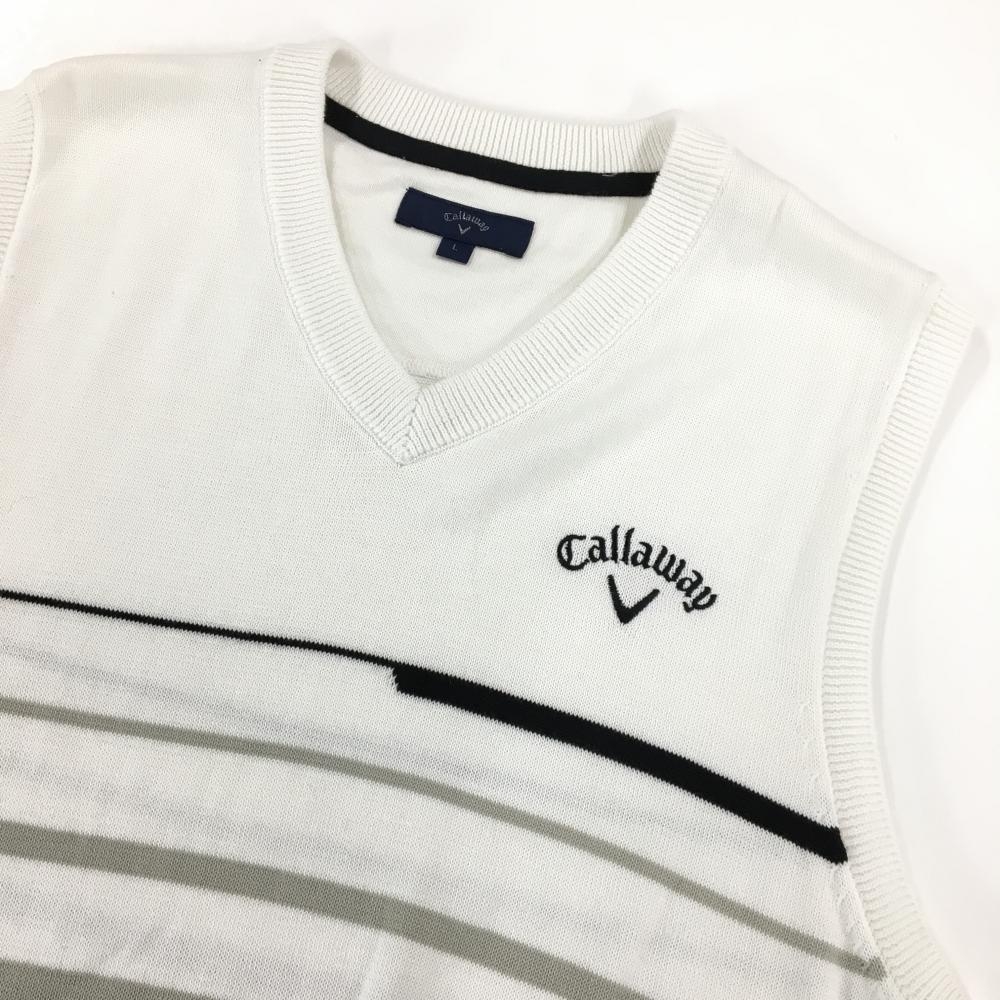 【超美品】キャロウェイ ニットベスト 白×グレー 下部ボーダー ロゴ刺しゅう メンズ L ゴルフウェア Callaway