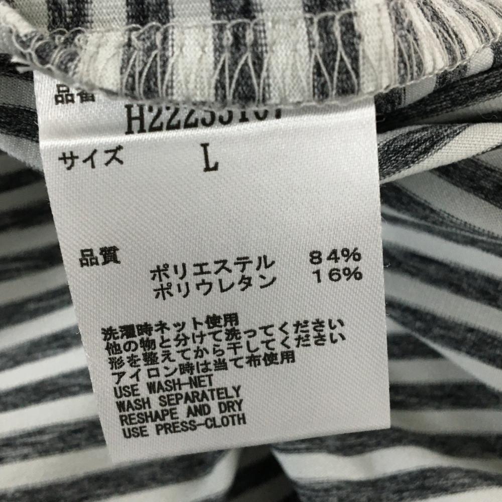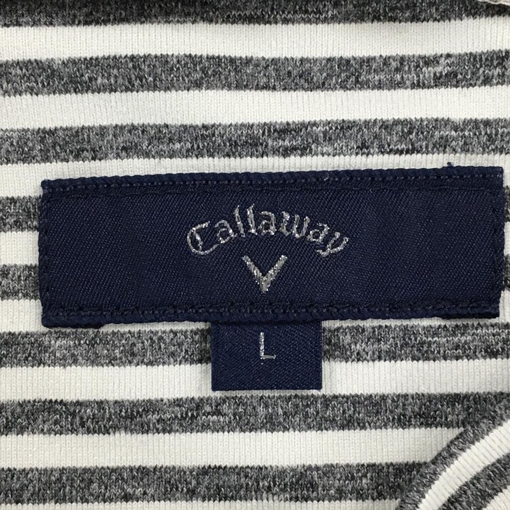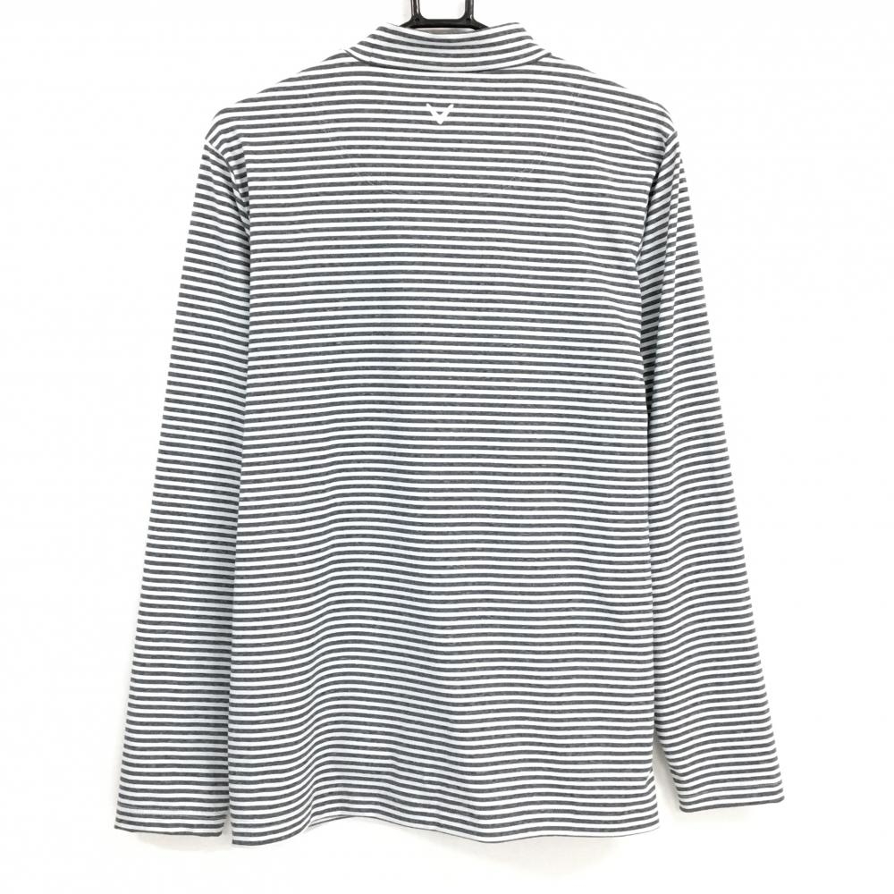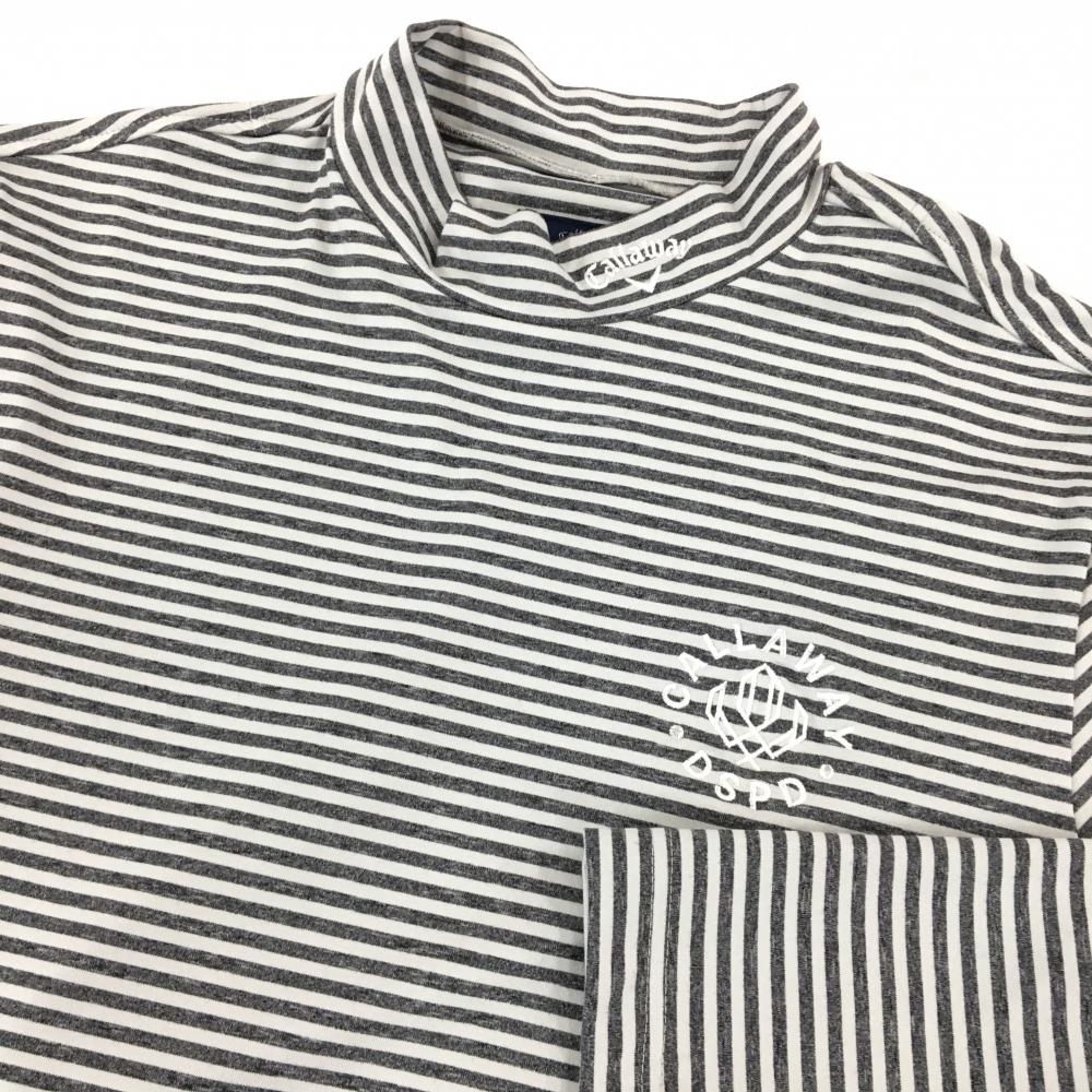 【超美品】キャロウェイ 長袖ハイネックシャツ ダークグレー×オフホワイト ボーダー ロゴ刺しゅう メンズ L ゴルフウェア Callaway