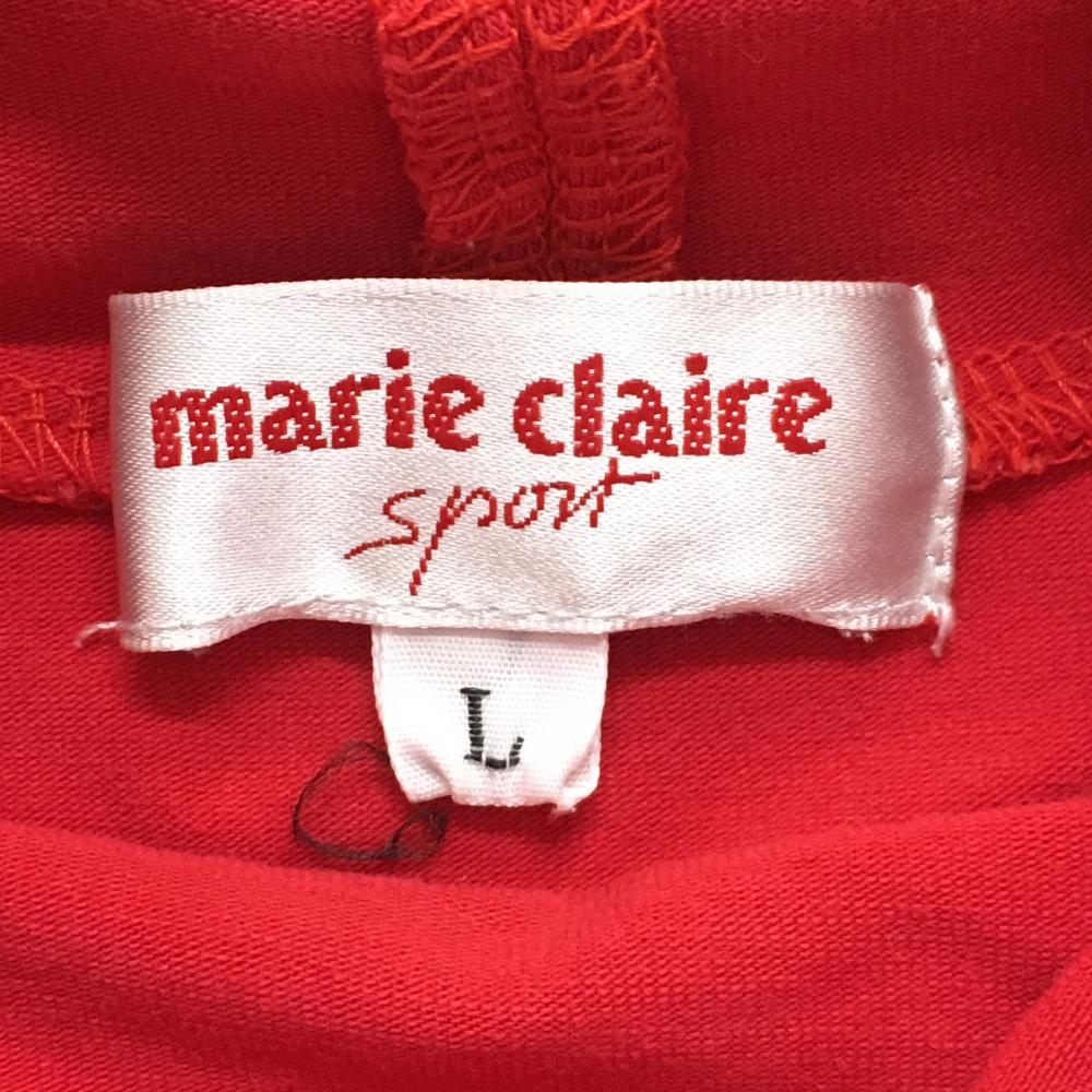 マリクレール 長袖ハイネックシャツ レッド ロゴ刺しゅう レディース L ゴルフウェア marie claire