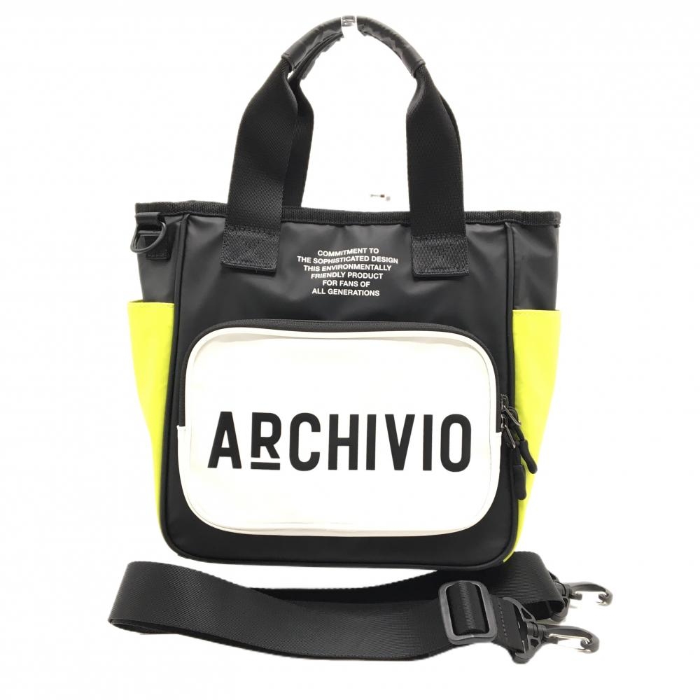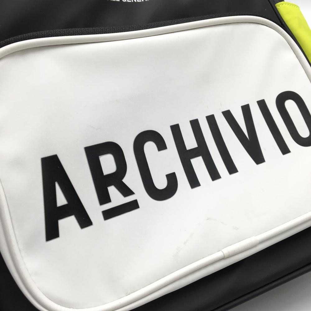 【美品】アルチビオ 2WAYカートバッグ 黒×白×ライムイエロー系 内外サイドポケット ショルダー着脱可 ゴルフ archivio