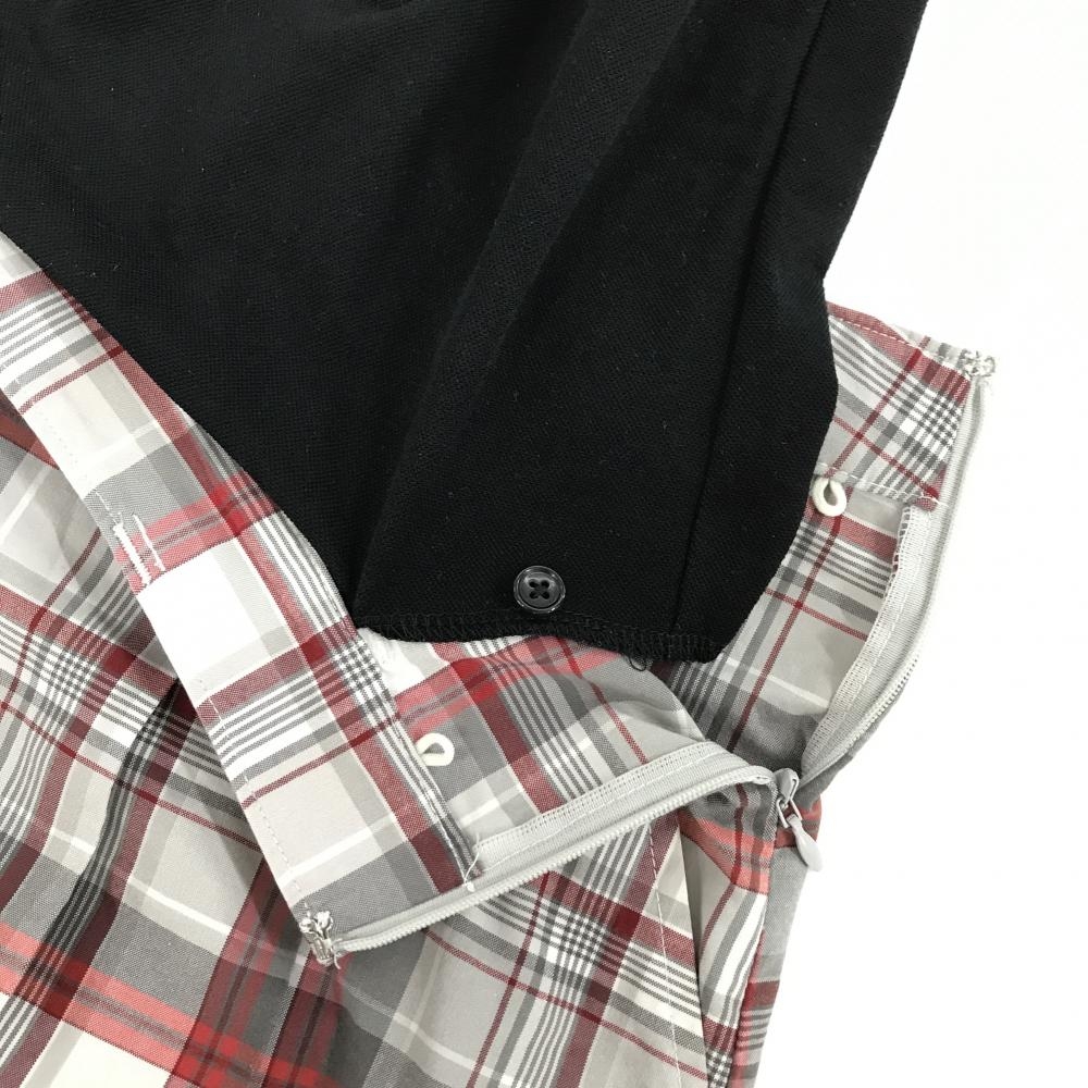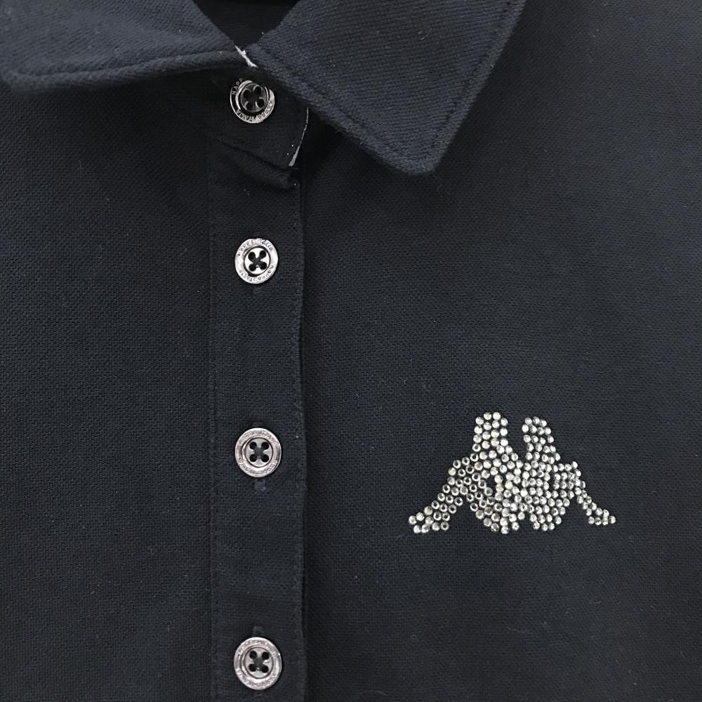 【超美品】カッパ 半袖ポロワンピース 黒×白 チェックスカート ラインストーンロゴ レディース S ゴルフウェア Kappa