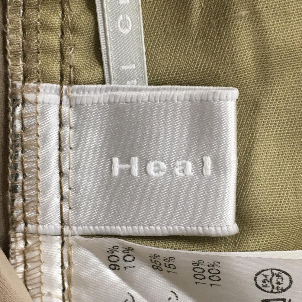 【美品】ヒールクリーク パンツ ベージュ×白 ツイード風 ストレッチ レディース 40(M) ゴルフウェア Heal Creek