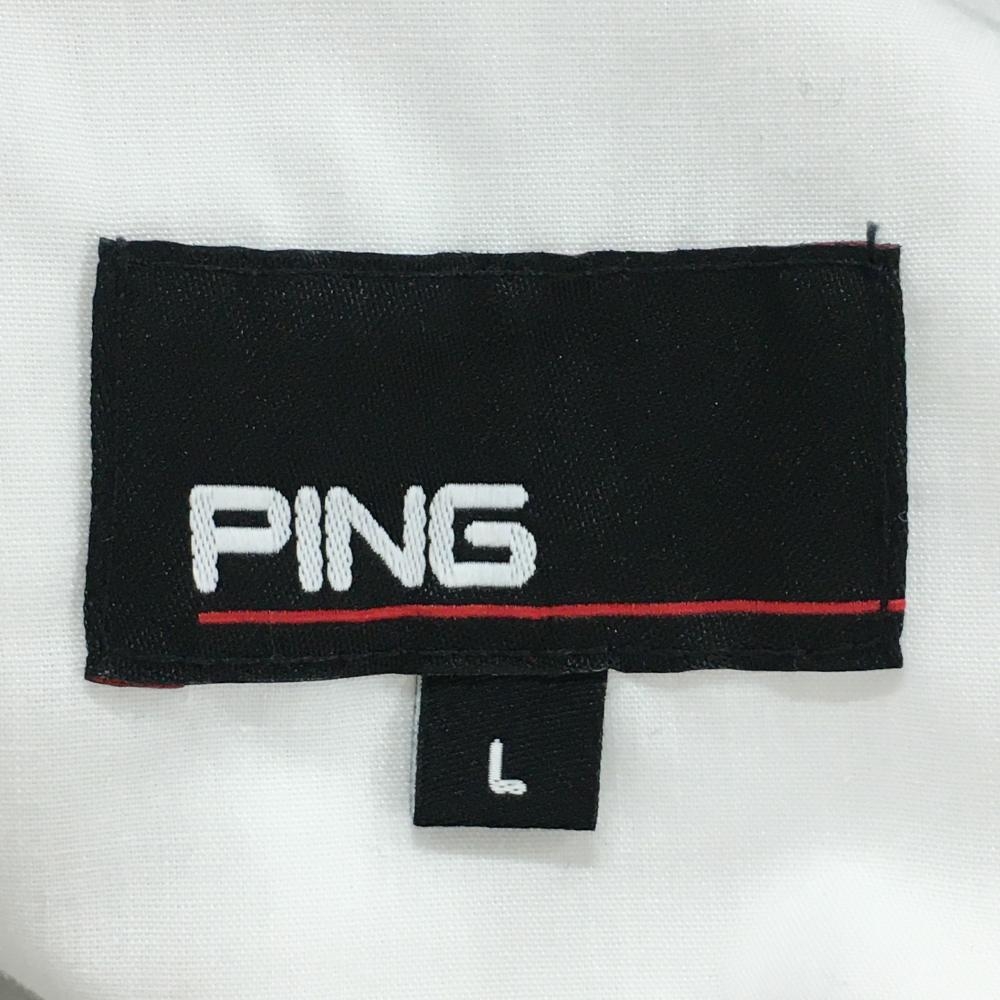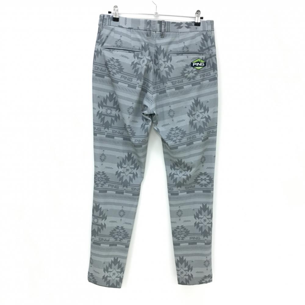 【美品】ピン パンツ ライトグレー×グレー 総柄 ロゴ刺しゅう 裏微起毛 メンズ L ゴルフウェア PING