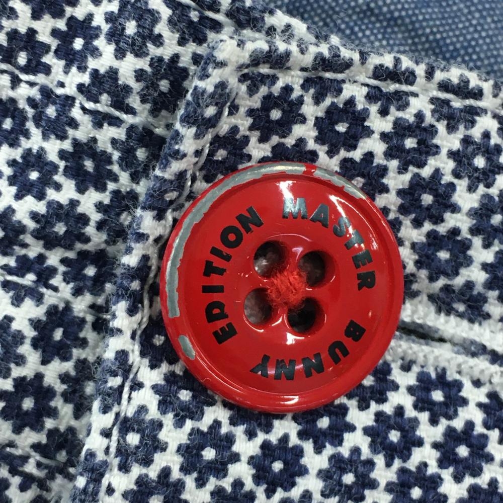 【美品】マスターバニー パンツ ネイビー×白 小花柄 ウエスト調節紐付 メンズ 6(XL) ゴルフウェア MASTER BUNNY EDITION
