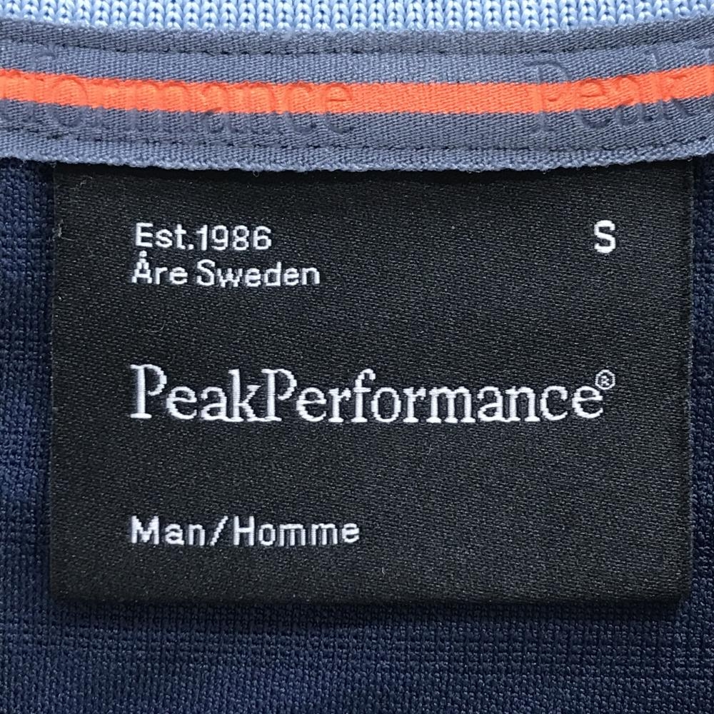 ピークパフォーマンス 半袖ポロシャツ ライトブルー×ネイビー ボーダー地模様 襟一部メッシュ メンズ S ゴルフウェア Peak Performance