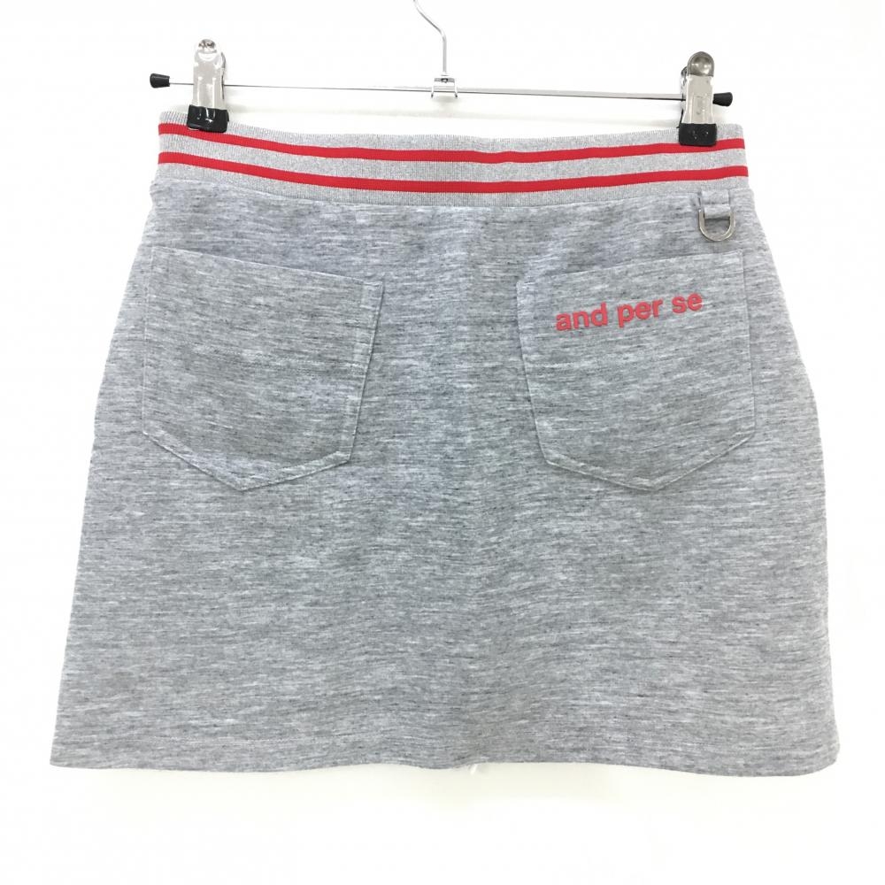 アンパスィ スカート 杢グレー×白 ウエストゴム レディース L ゴルフウェア and per se