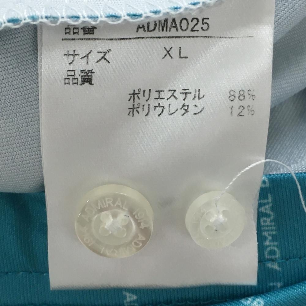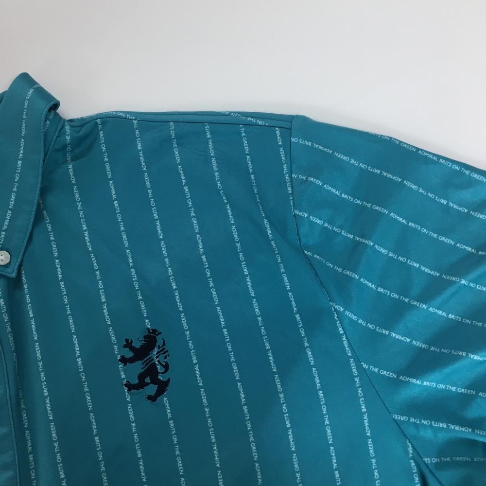 アドミラル 半袖ポロシャツ ブルーグリーン×白 英字ストライプ ロゴ刺しゅう メンズ XL ゴルフウェア Admiral