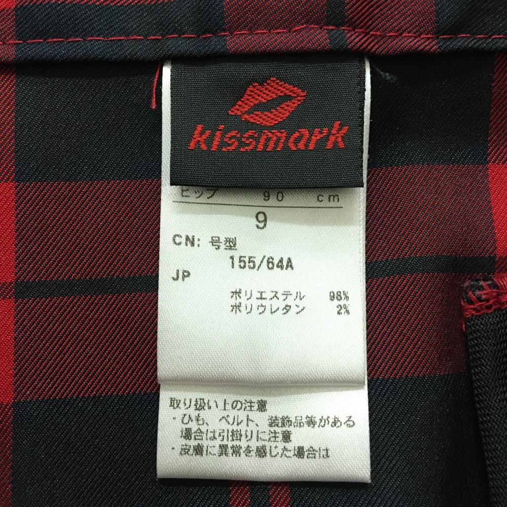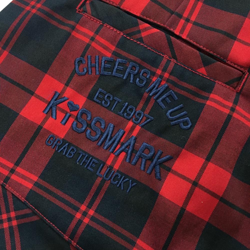 【美品】キスマーク スカート レッド×黒 チェック 裾プリーツ レディース 9(M) ゴルフウェア kissmark