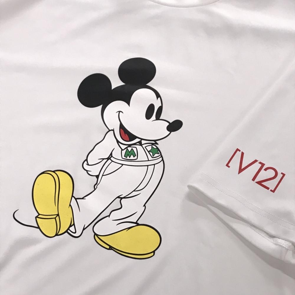 【超美品】V12×Disney 半袖ハイネックシャツ 白×黒 ミッキーマウス コラボ メンズ XXL ゴルフウェア V12