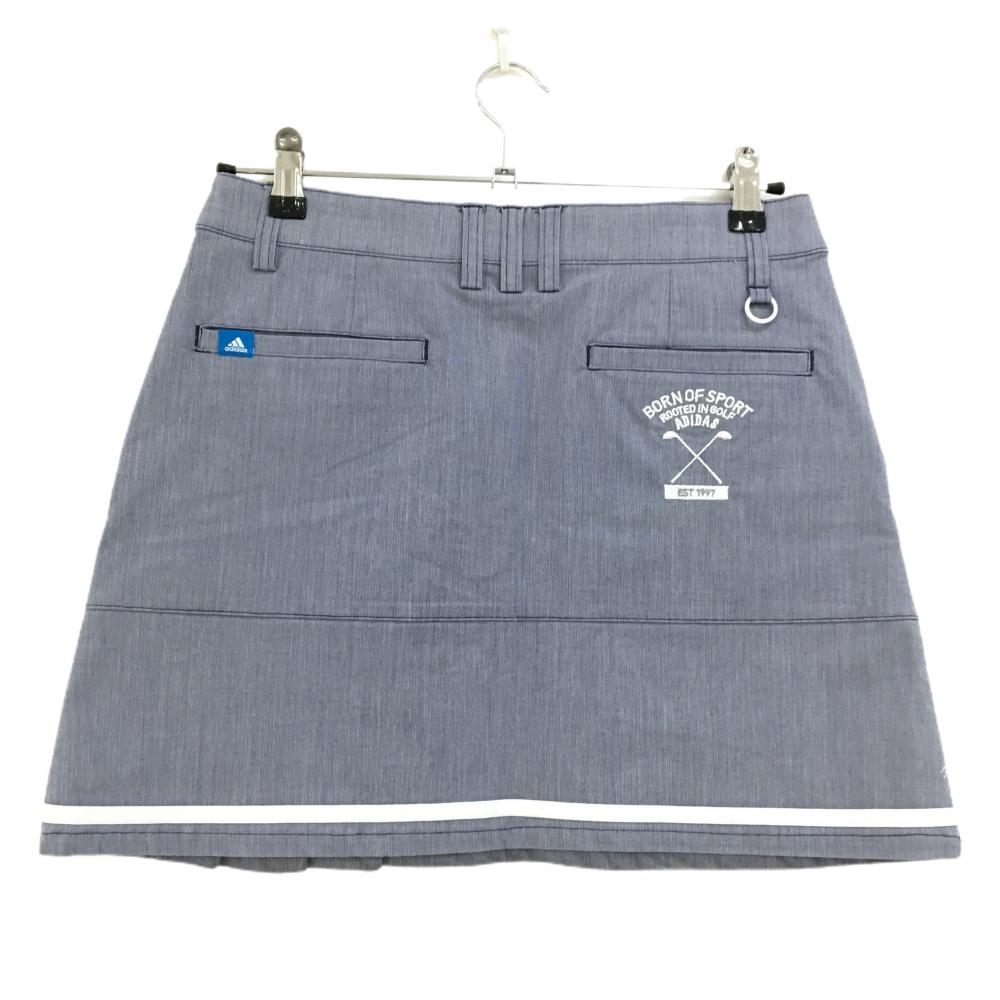【超美品】アディダス スカート 杢ネイビー×白 一部プリーツ 裾ライン 後ろ刺しゅう レディース M/M ゴルフウェア adidas