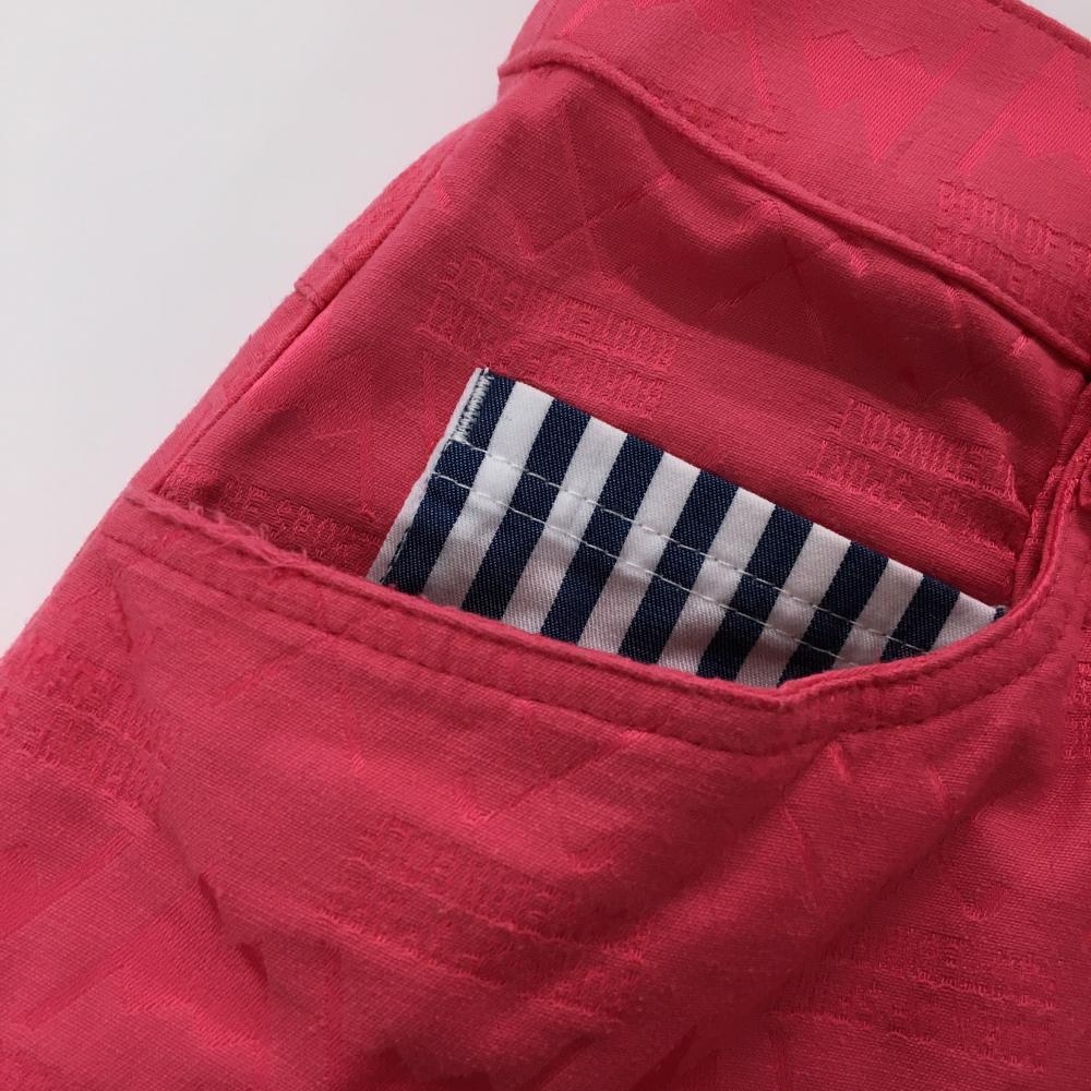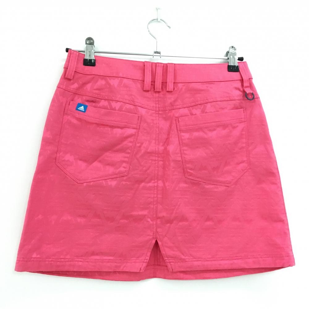 【美品】アディダス スカート ピンク 総柄 ポケット口一部ストライプ バックロゴ レディース M ゴルフウェア adidas