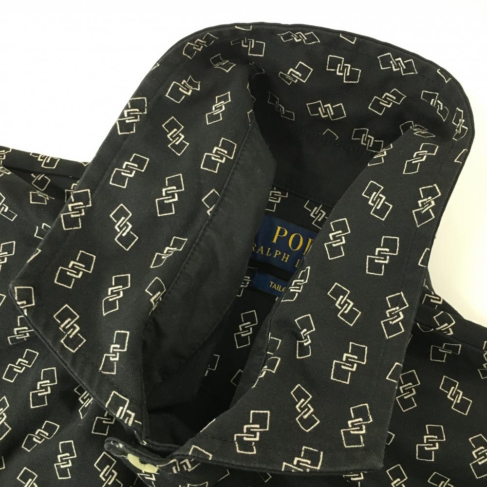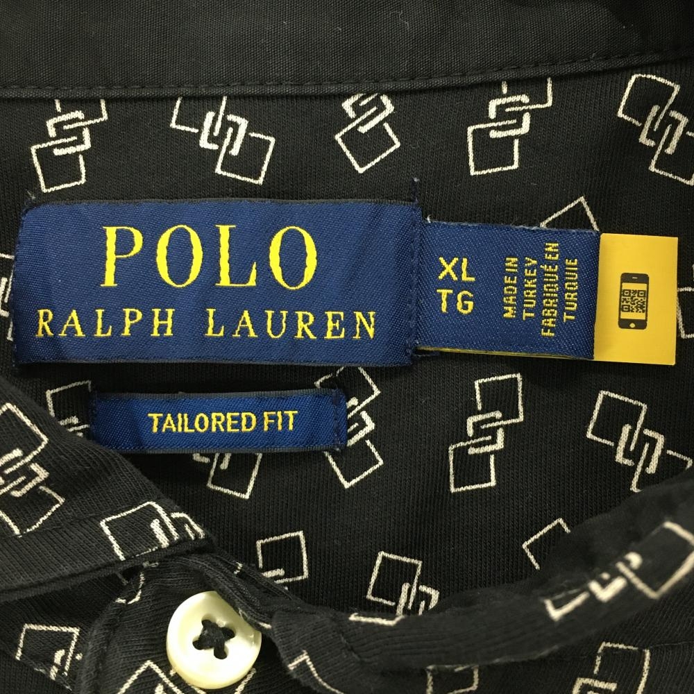 【美品】ポロラルフローレン 半袖ポロシャツ 黒×白 総柄 メンズ XL TG ゴルフウェア Ralph Lauren