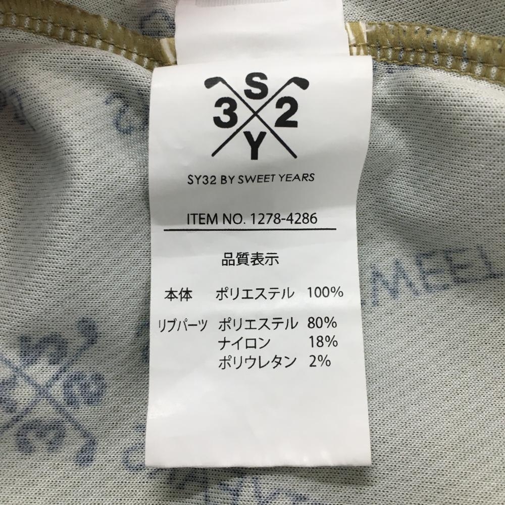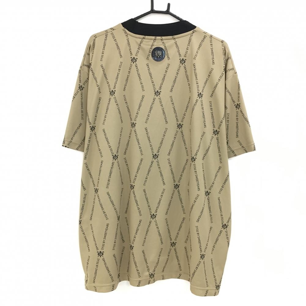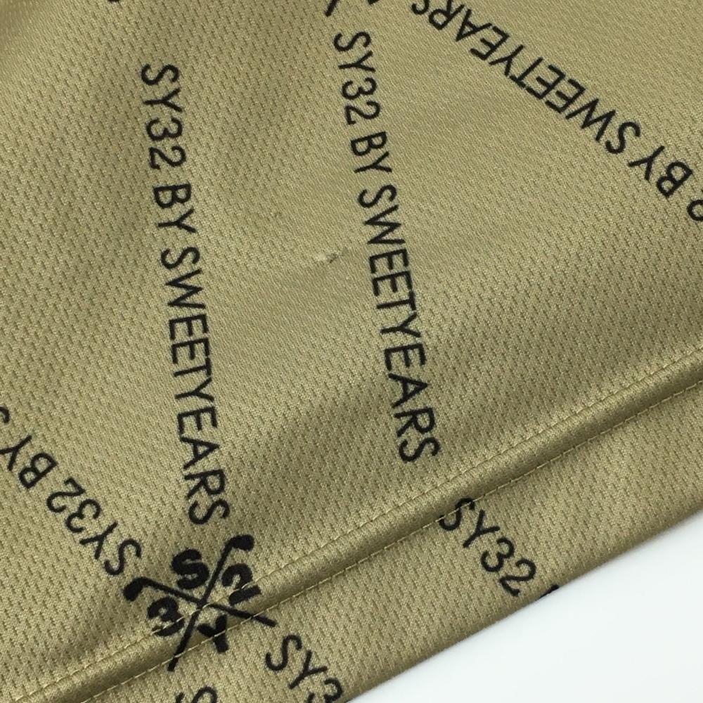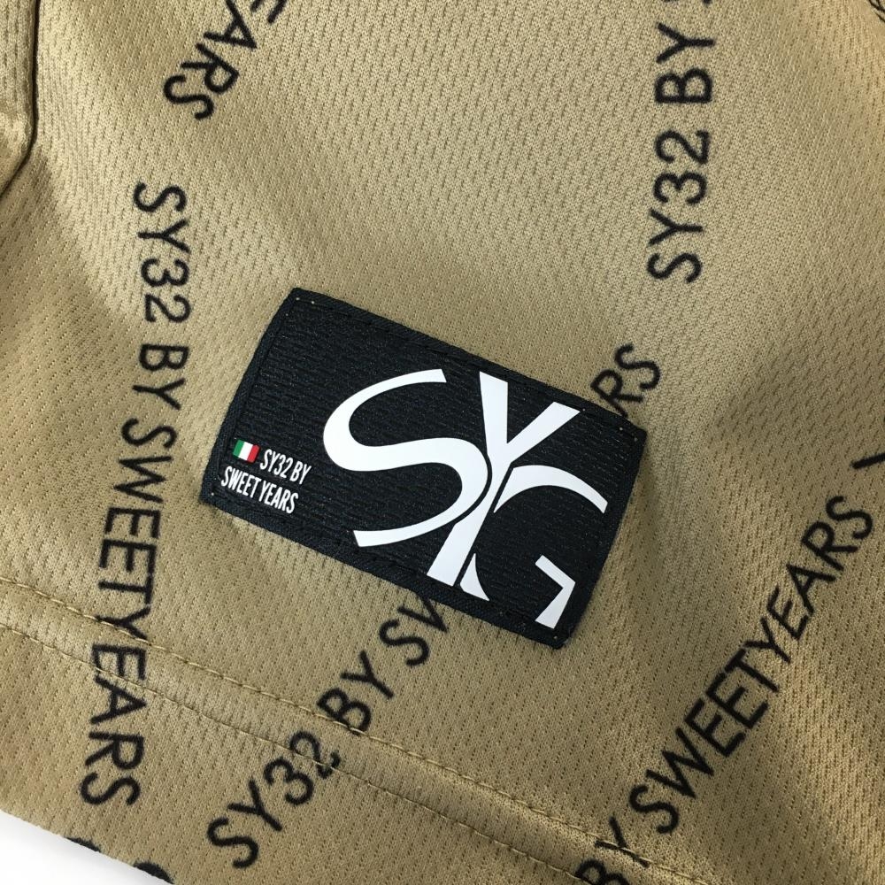 【超美品】SY32 半袖ハイネックシャツ ベージュ系×黒 ロゴ総柄 メンズ 4L ゴルフウェア SY32 BY SWEET YEARS