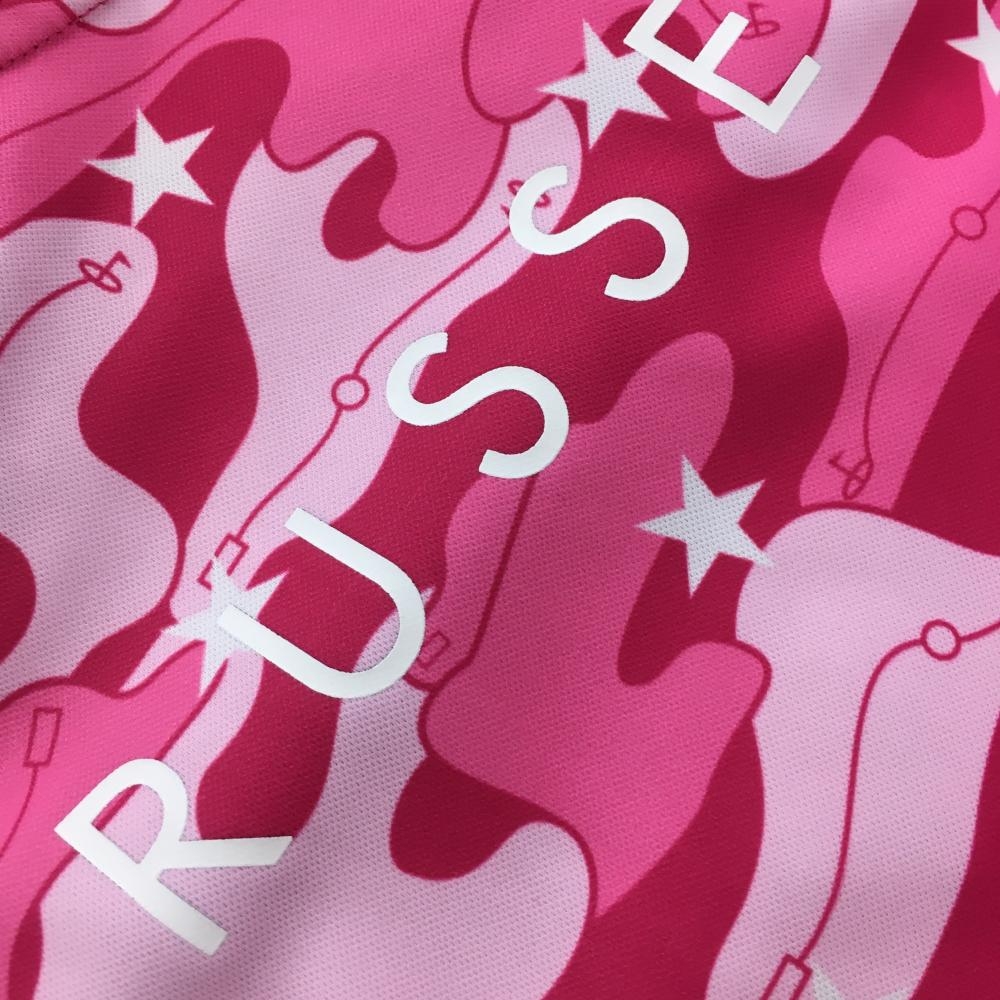 【超美品】ラッセルノ 半袖ポロシャツ ピンク 総柄 レディース 0(S) ゴルフウェア RUSSELUNO