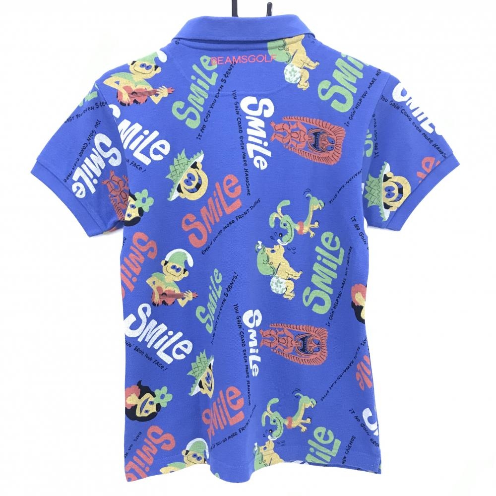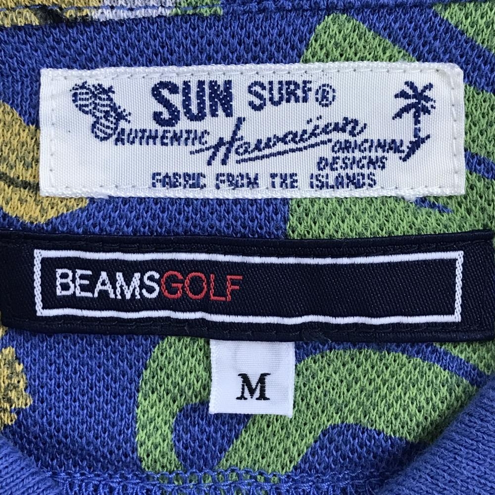 ビームスゴルフ×SUNSURF 半袖ポロシャツ ブルー×マルチカラー 総柄 レディース M ゴルフウェア BEAMS GOLF