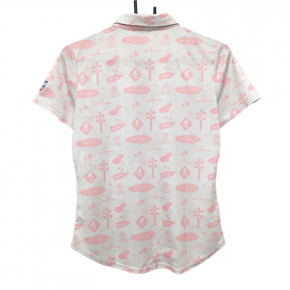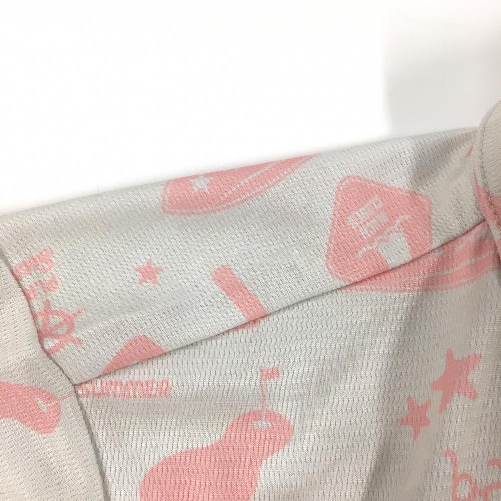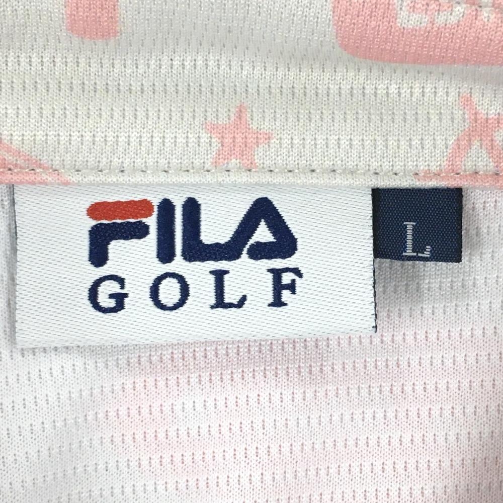 【美品】フィラゴルフ 半袖ポロシャツ ライトグレー×ライトピンク 総柄 スナップボタン レディース L ゴルフウェア FILA GOLF