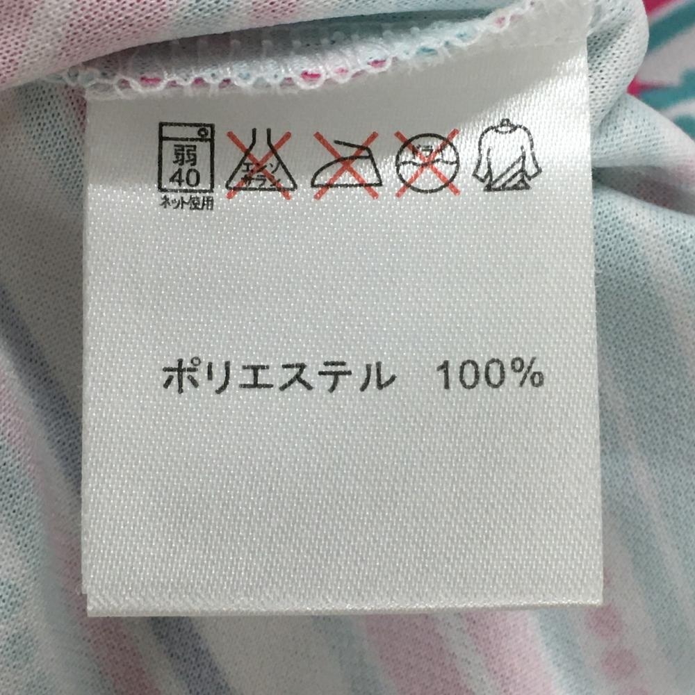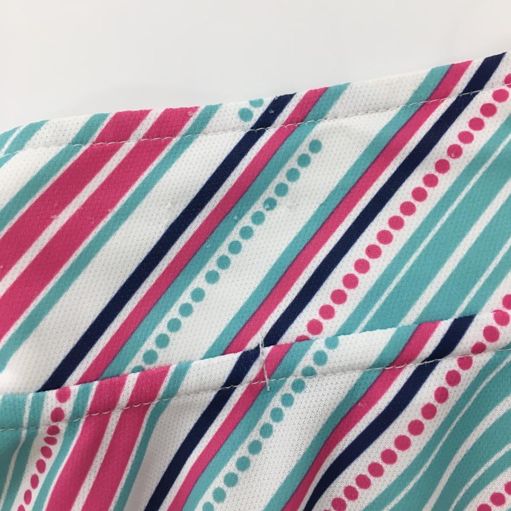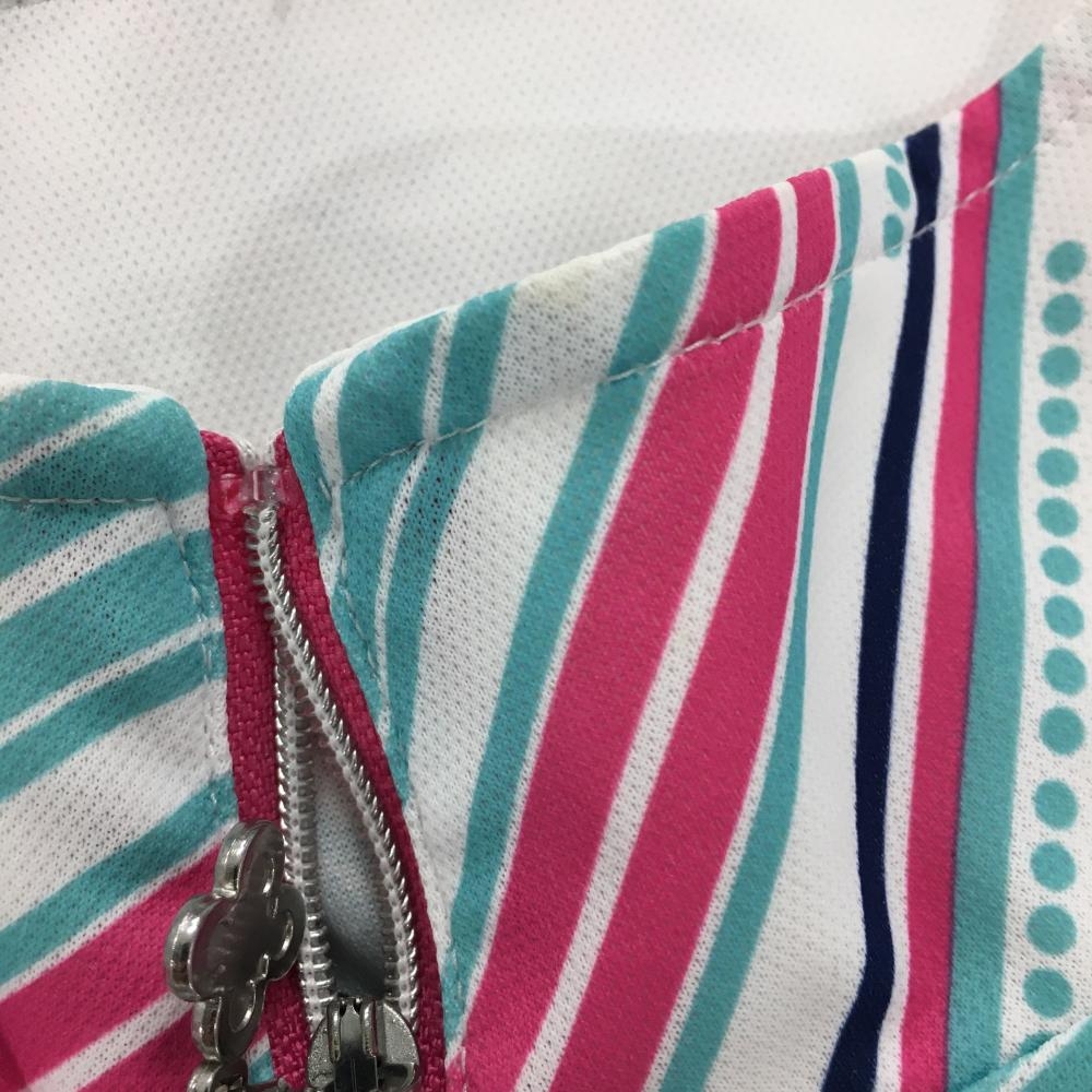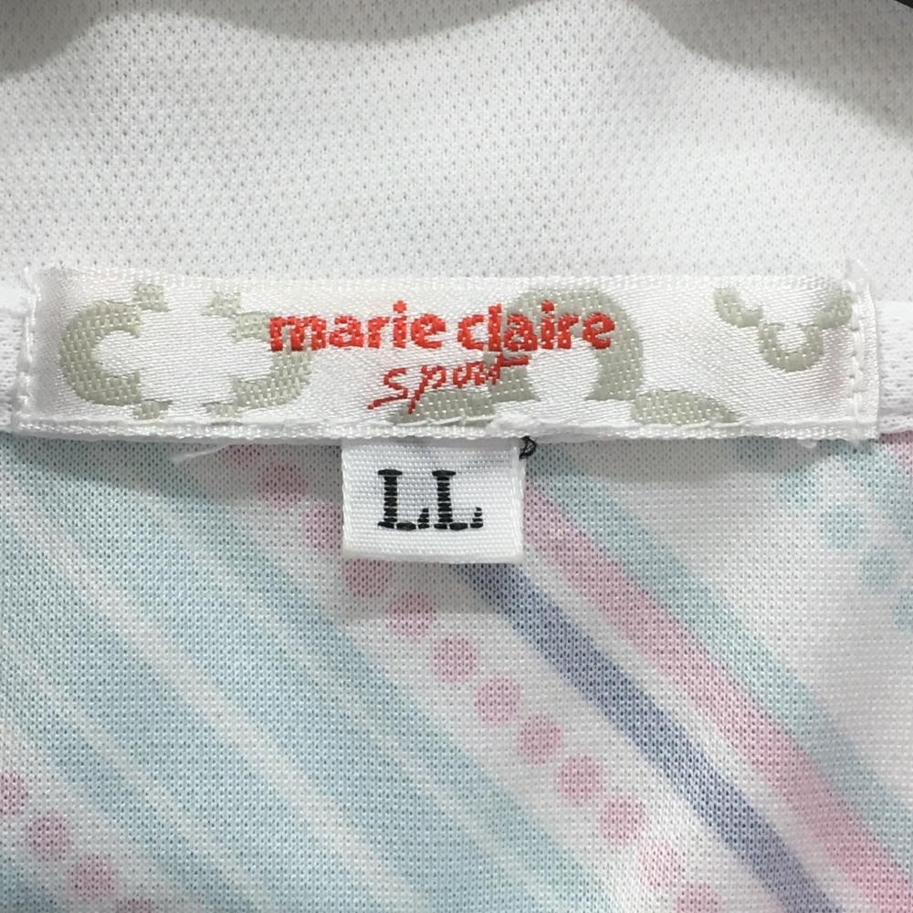 【美品】マリクレールスポール 半袖ハイネックシャツ ミントブルー×ピンク 斜めストライプ レディース LL ゴルフウェア marie claire