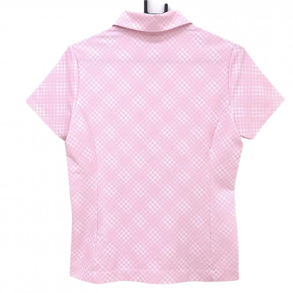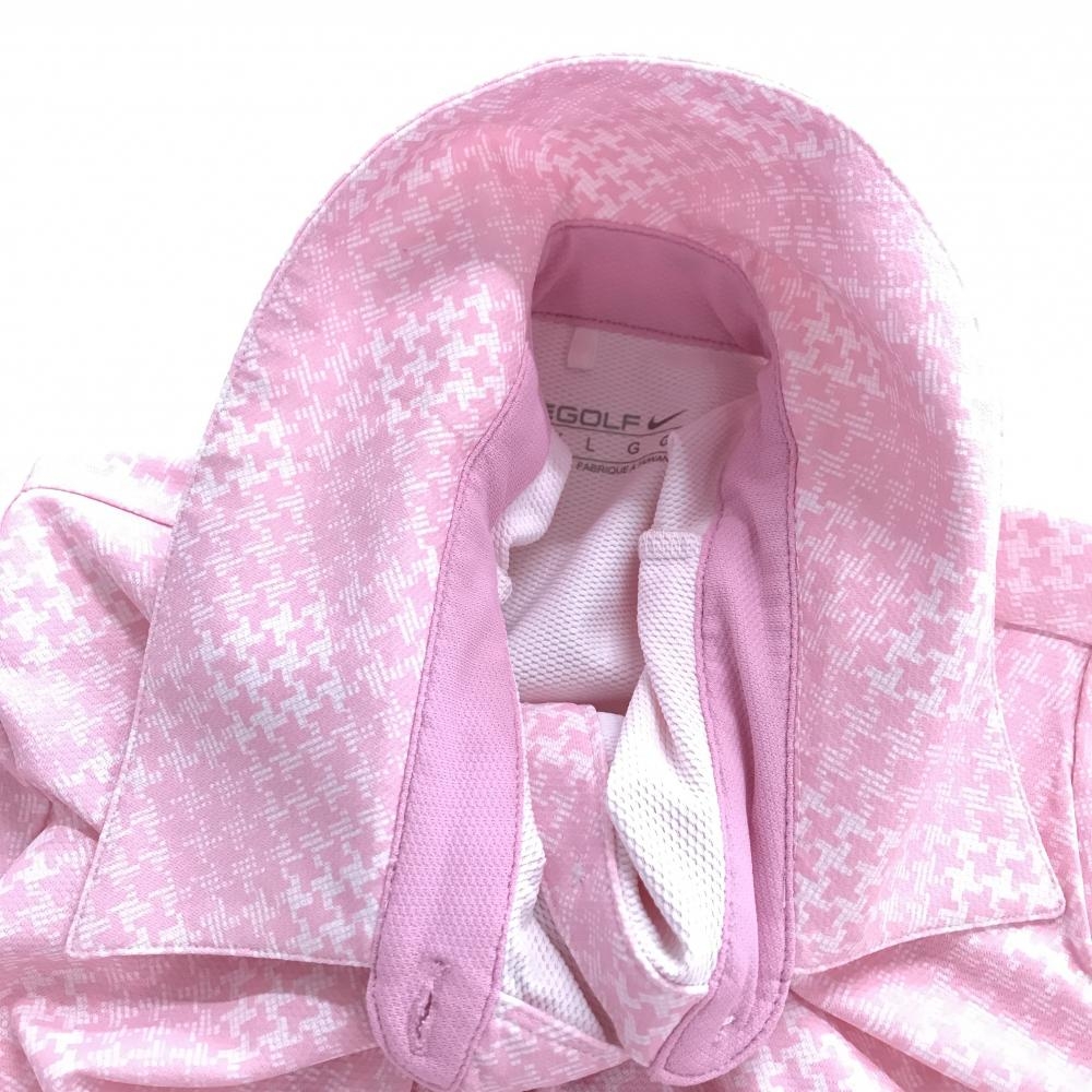 【美品】ナイキゴルフ 半袖ポロシャツ 白×ピンク 総柄 前立て下ロゴ レディース LGG ゴルフウェア NIKE
