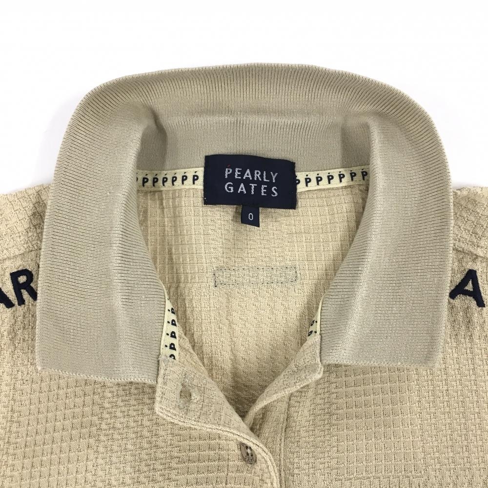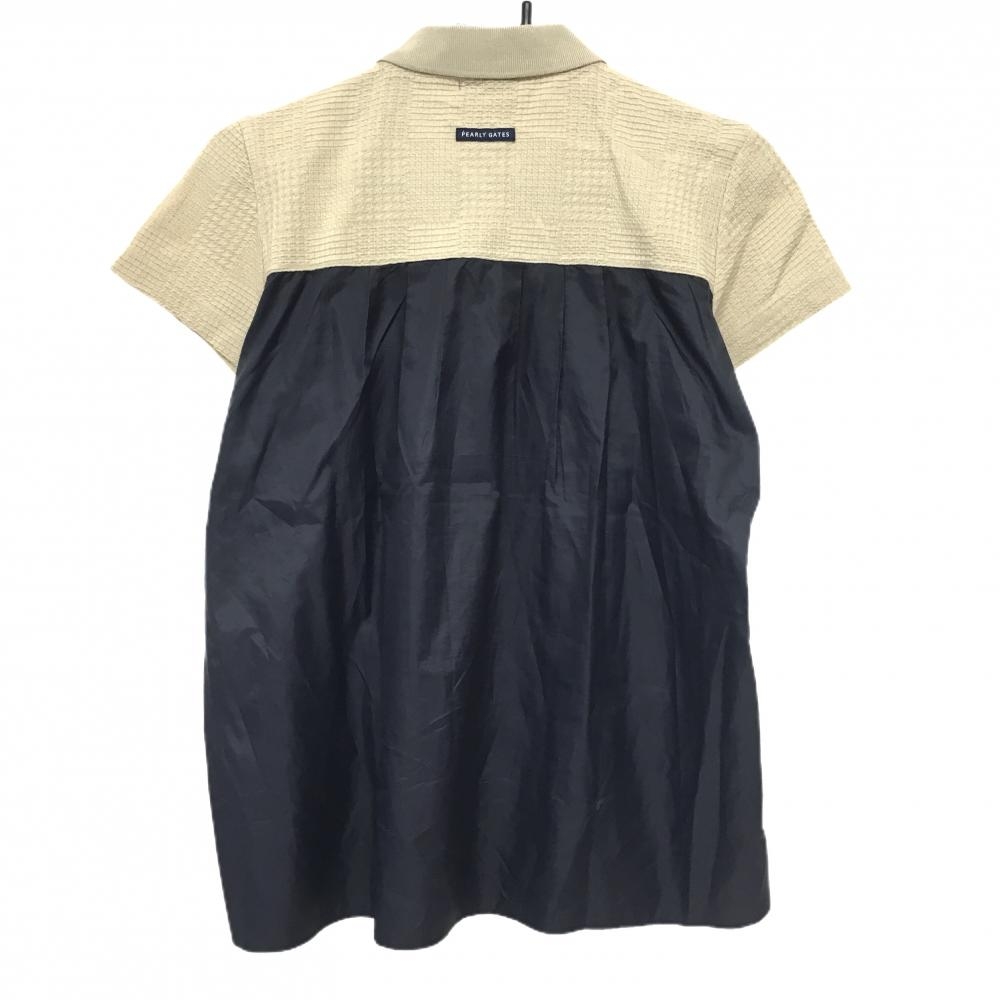 パーリーゲイツ 半袖ポロシャツ ベージュ×ネイビー 織生地 異素材 レディース 0(S) ゴルフウェア PEARLY GATES