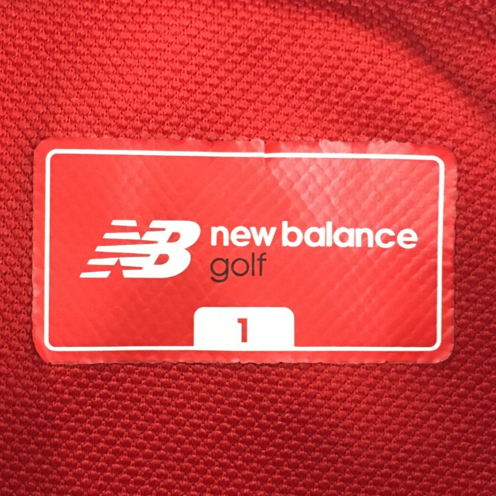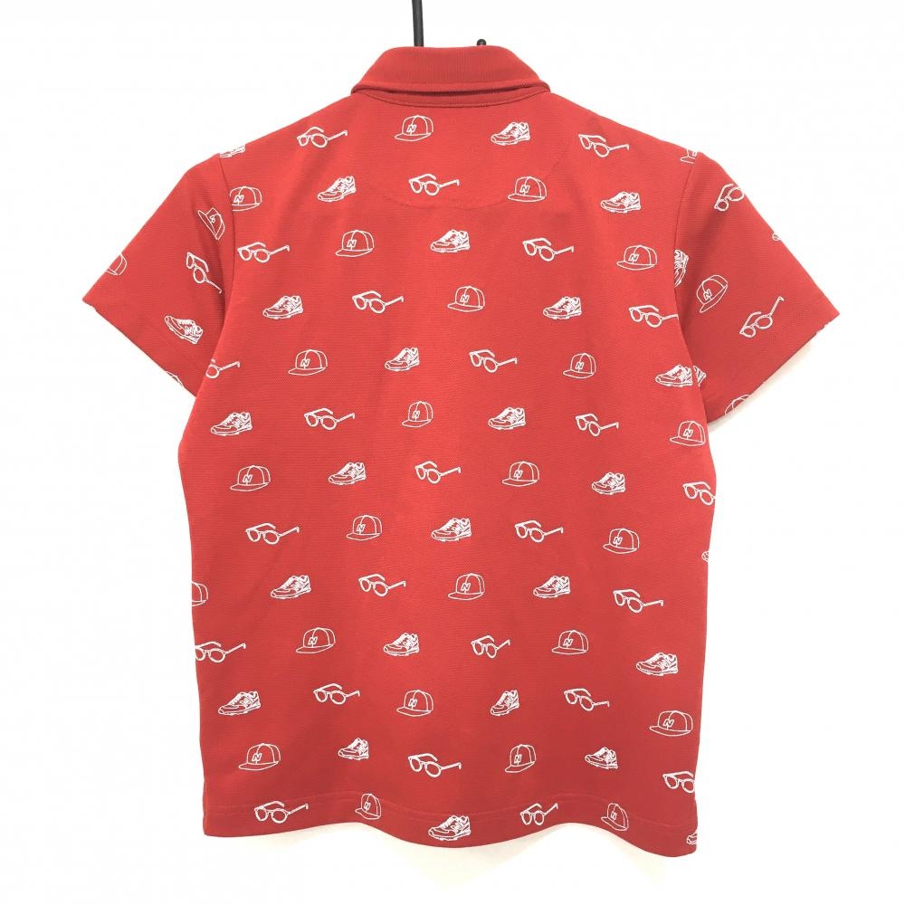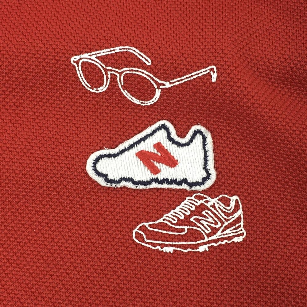 ニューバランスゴルフ 半袖ポロシャツ レッド×白 総柄 シューズワッペン ボタンダウン レディース 1(M) ゴルフウェア New Balance