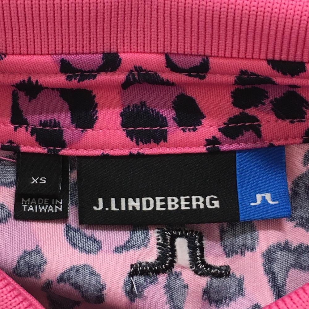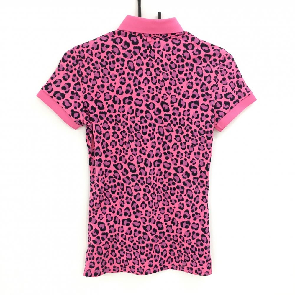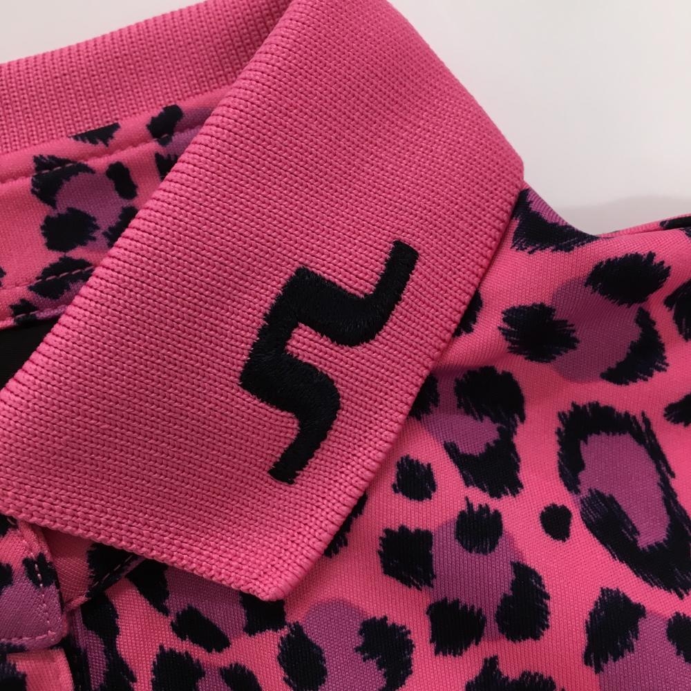 【超美品】ジェイリンドバーグ 半袖ポロシャツ ピンク×黒 レオバード レディース XS ゴルフウェア J.LINDEBERG