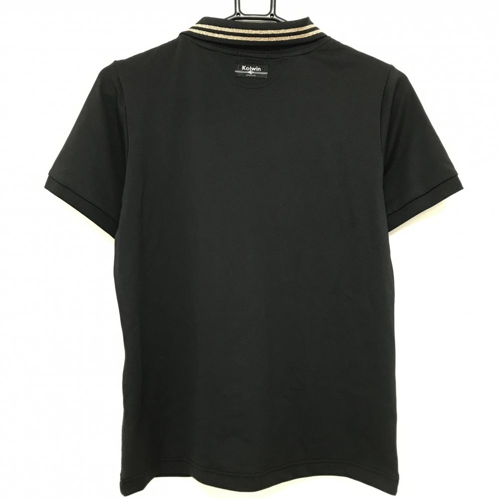 【美品】コルウィン 半袖ポロシャツ 黒×ゴールド 襟ライン ネクタイ柄 ストーン レディース L ゴルフウェア Kolwin