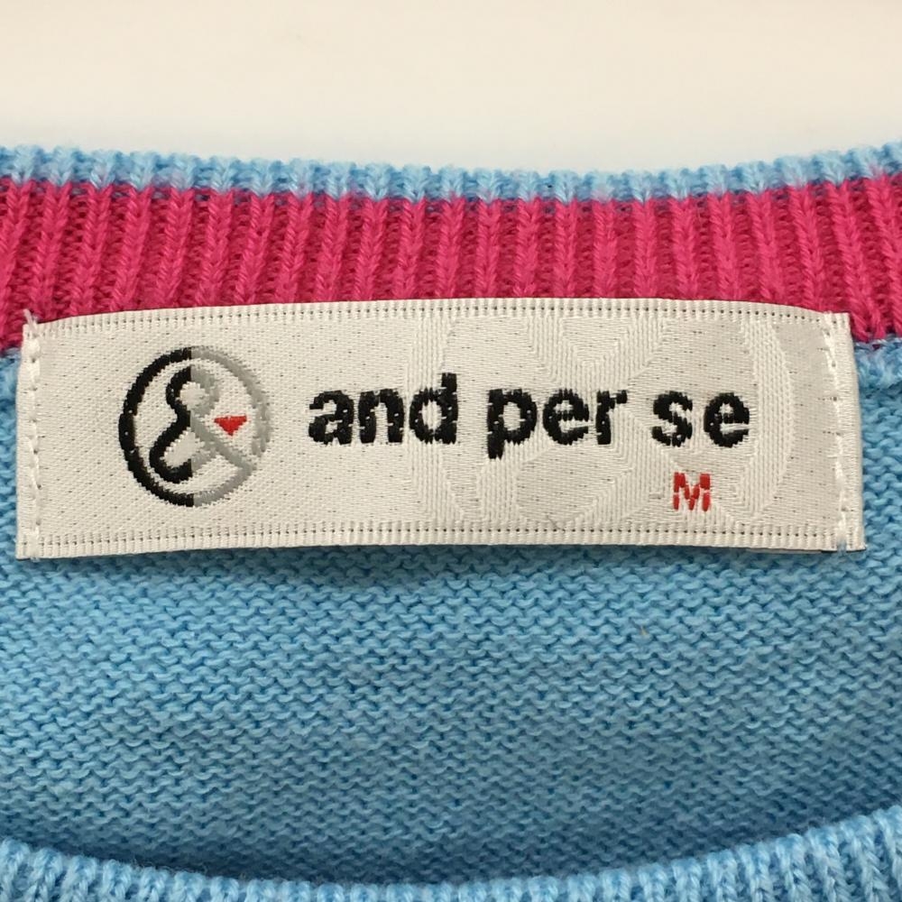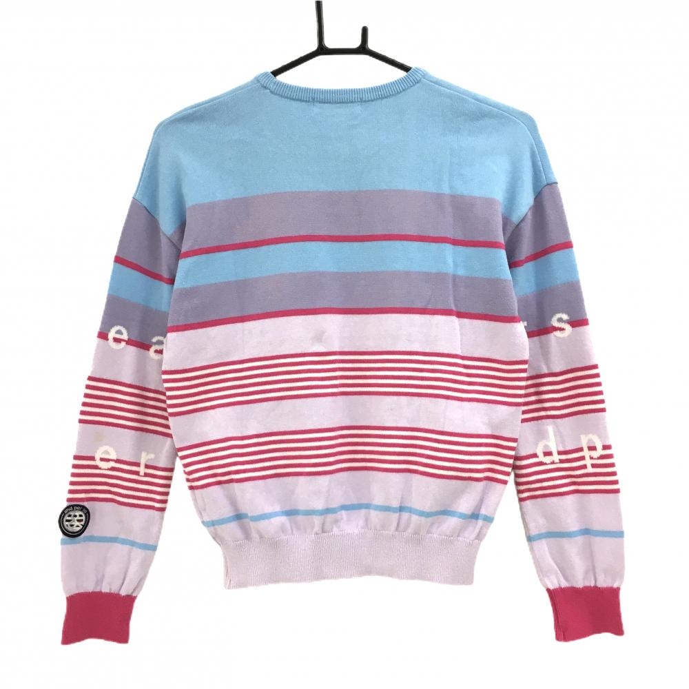 アンパスィ セーター ライトブルー×ピンク×パープル ランダムボーダー ロゴ ニット レディース M ゴルフウェア and per se