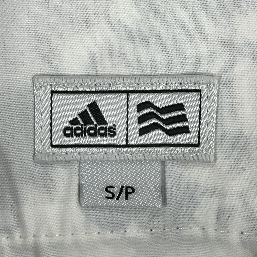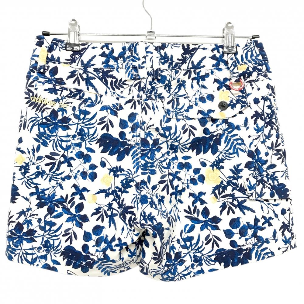 【超美品】アディダス ショートパンツ 白×ブルー リーフ総柄 ロゴイエロー レディース S/P ゴルフウェア adidas