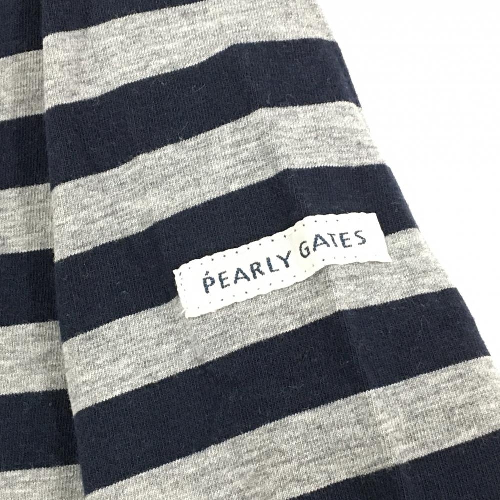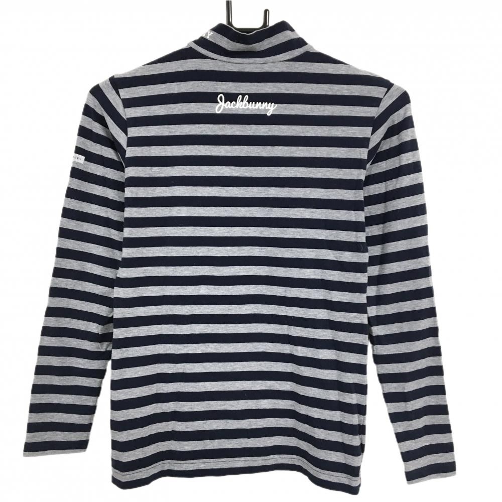 【超美品】ジャックバニー 長袖ハイネックシャツ ネイビー×グレー ボーダー ロゴ白 ストレッチ レディース 0(S) ゴルフウェア Jack Bunny