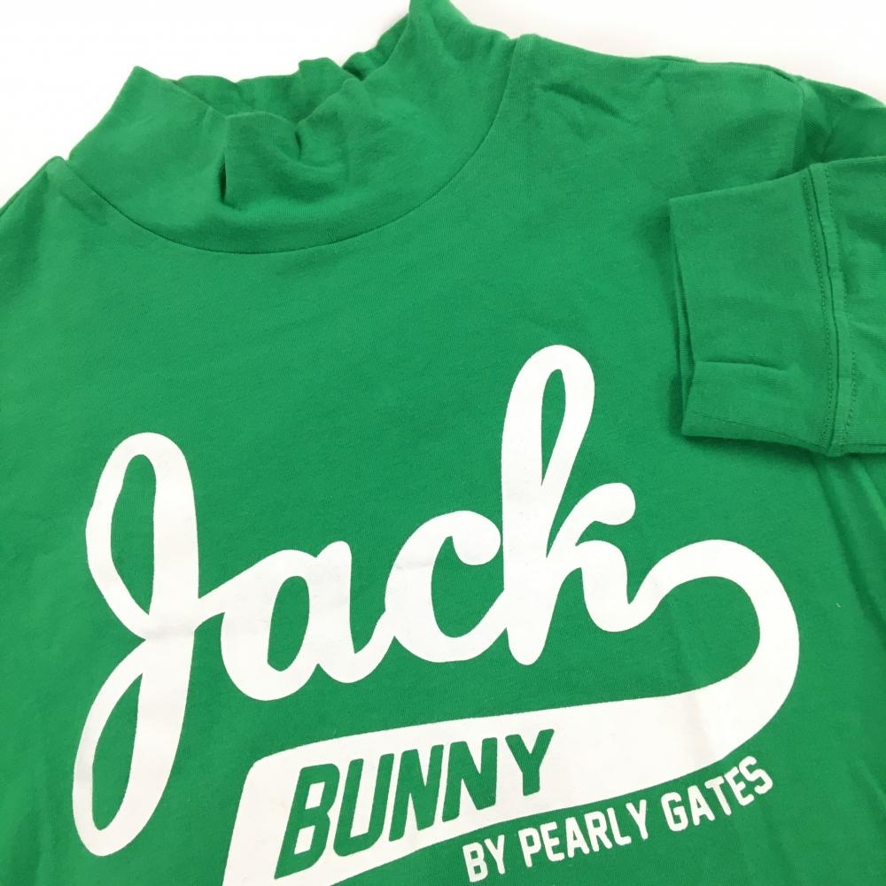 【超美品】ジャックバニー 長袖ハイネックシャツ グリーン ロゴ白 ストレッチ レディース 0(S) ゴルフウェア Jack Bunny