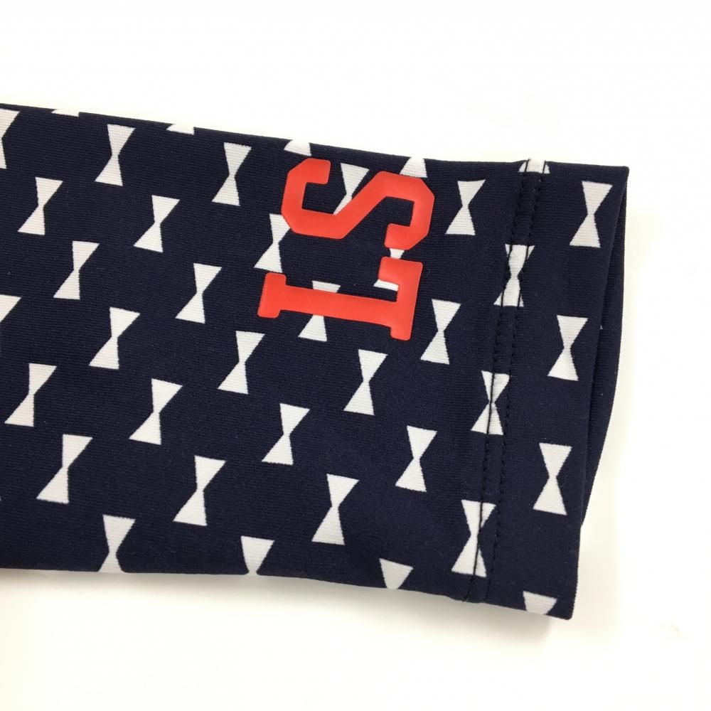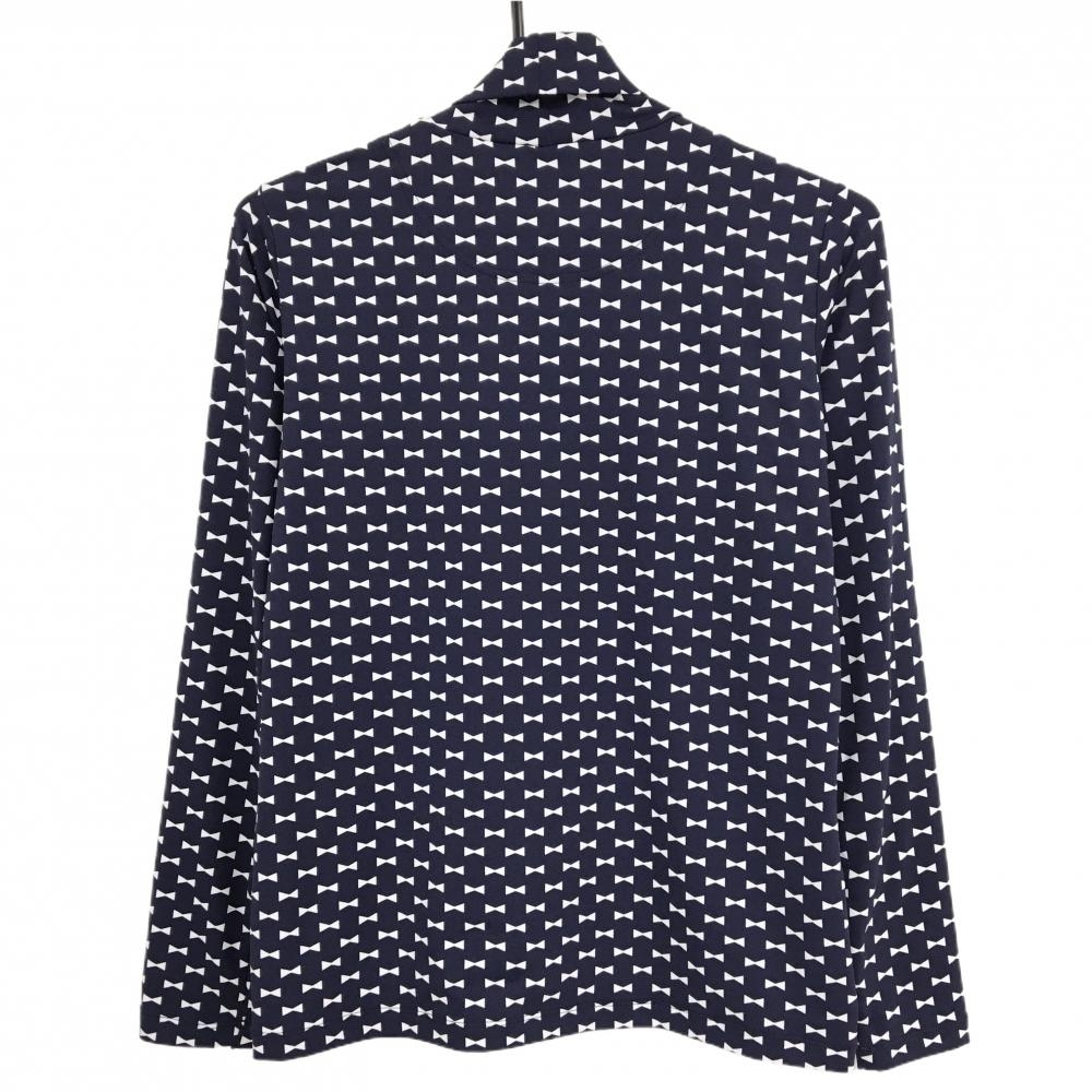 【超美品】ルコック 長袖タートルネックシャツ ネイビー×白 リボン総柄 ストレッチ レディース L ゴルフウェア le coq sportif