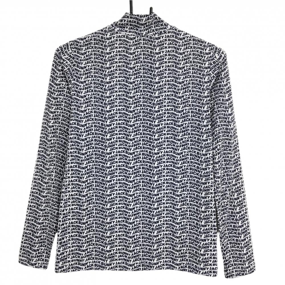 【超美品】ジャックバニー 長袖ハイネックシャツ 白×ネイビー ロゴ総柄 インナーシャツ レディース 0(S) ゴルフウェア Jack Bunny