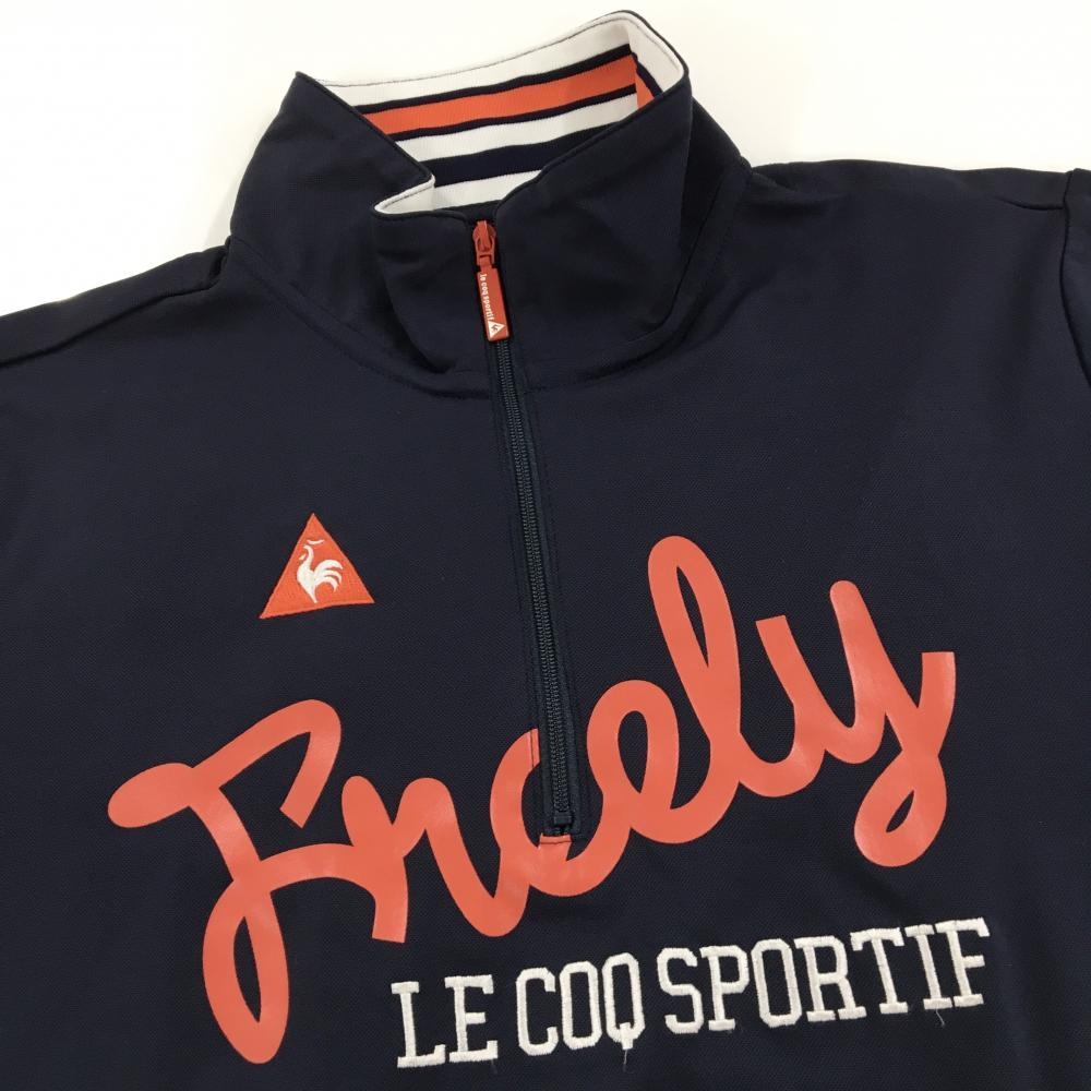 【超美品】ルコックゴルフ 長袖ハイネックシャツ ネイビー ロゴレッド ハーフジップ ストレッチ レディース L ゴルフウェア le coq sportif