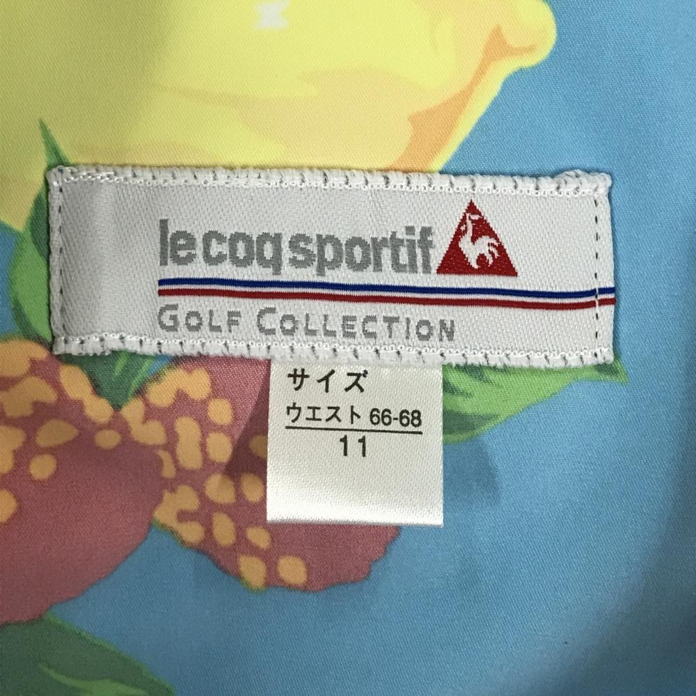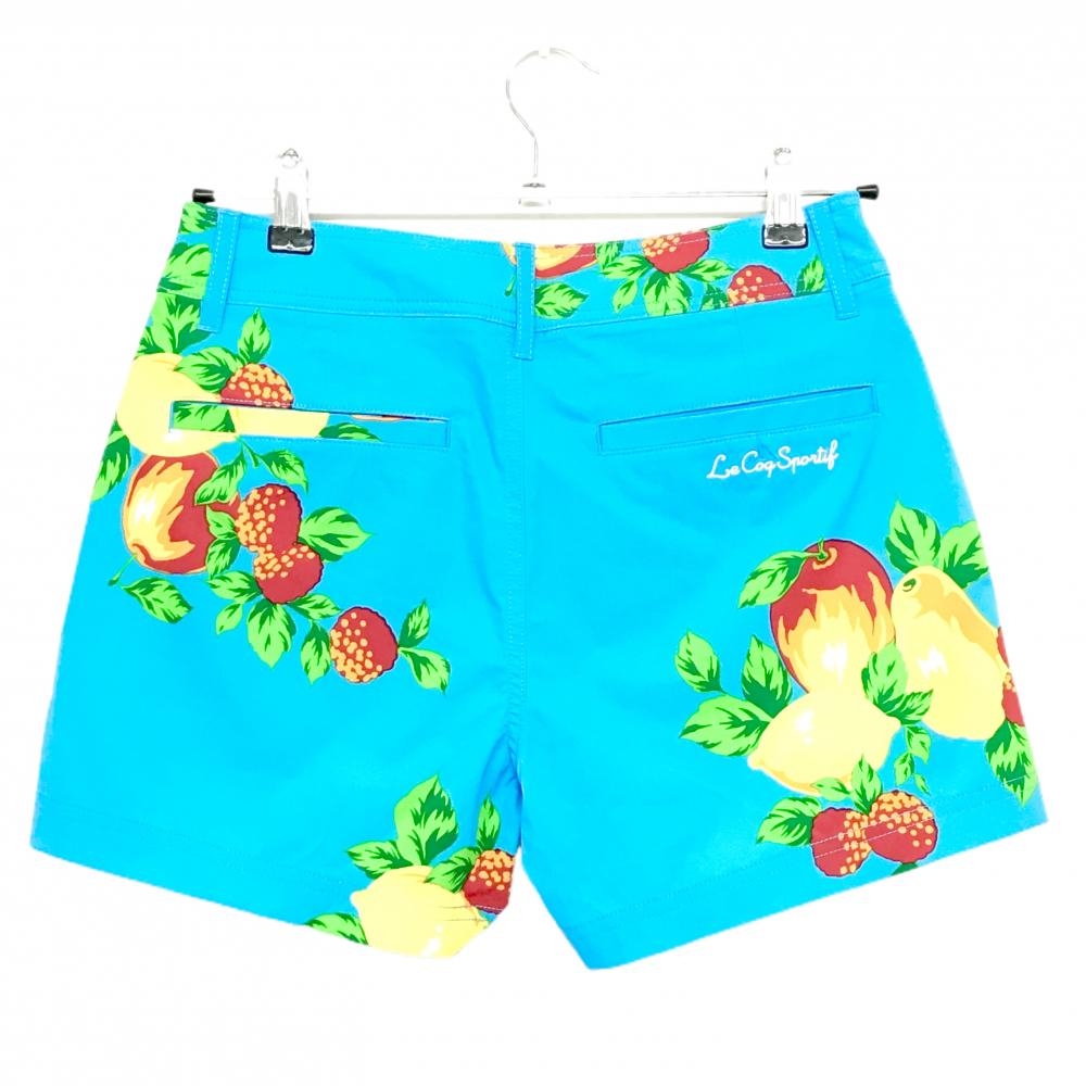 【新品】ルコックゴルフ ショートパンツ ライトブルー×イエロー×レッド フルーツ柄 レディース 11 ゴルフウェア le coq sportif
