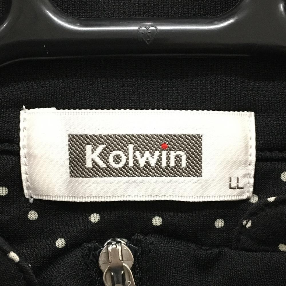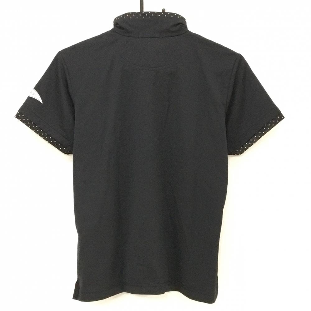 【美品】コルウィン 半袖ハイネックシャツ 黒×白 ハーフジップ ネック・袖口ドット柄 レディース LL ゴルフウェア Kolwin