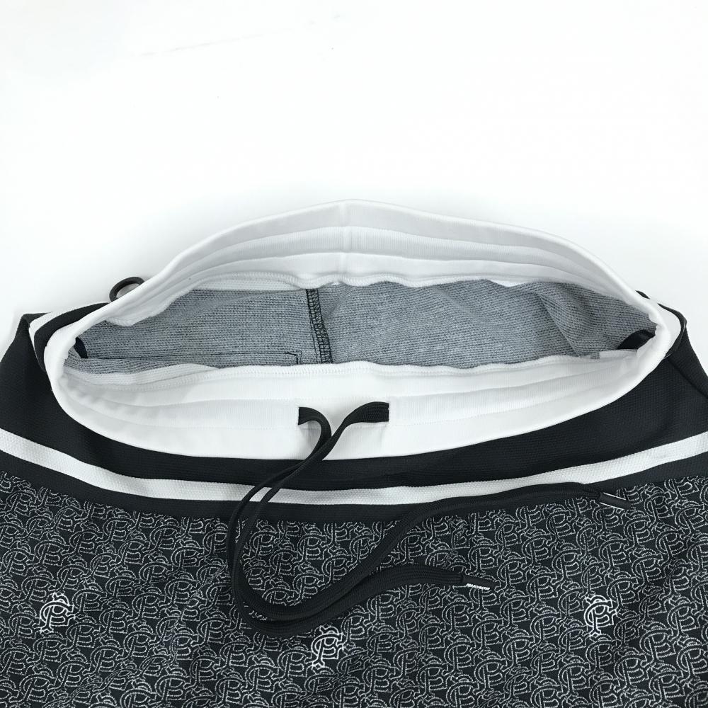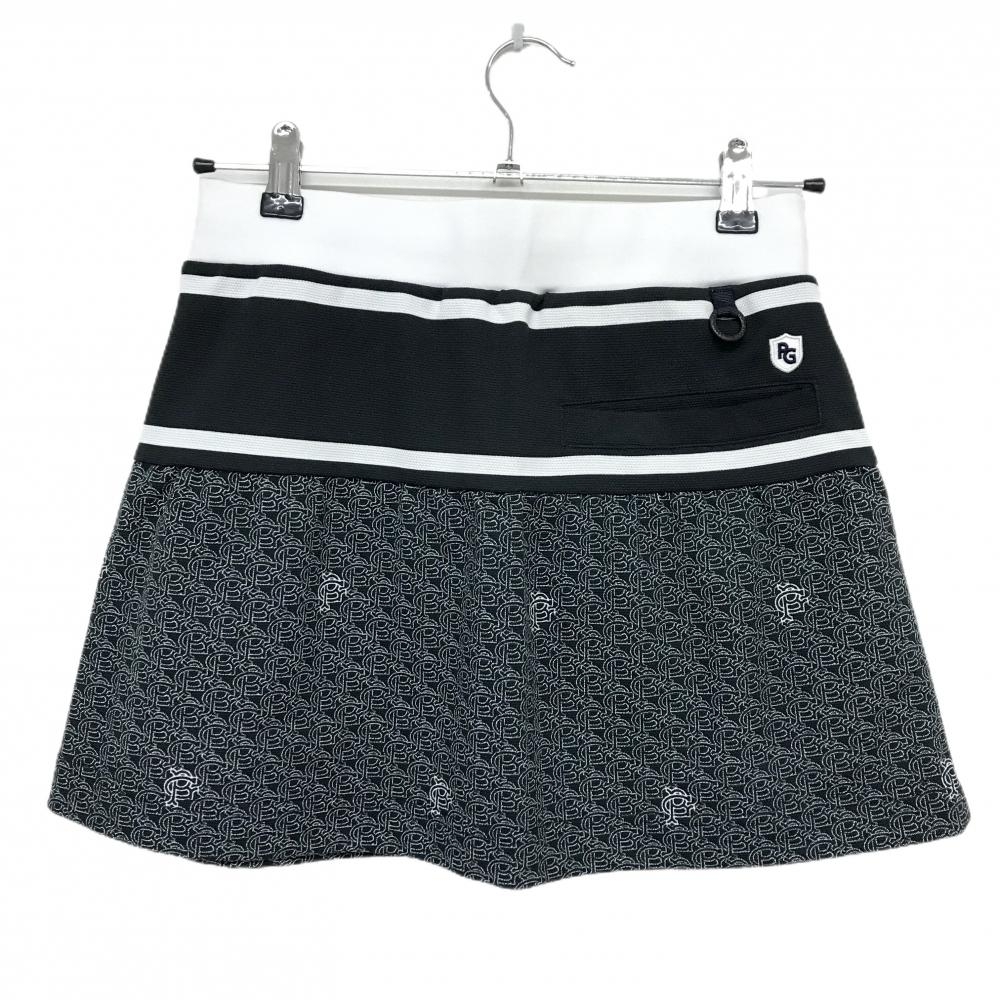 【美品】パーリーゲイツ スカート 黒×白 一部ロゴ総柄 ウエストゴム レディース 0(S) ゴルフウェア PEARLY GATES