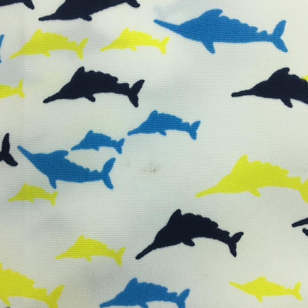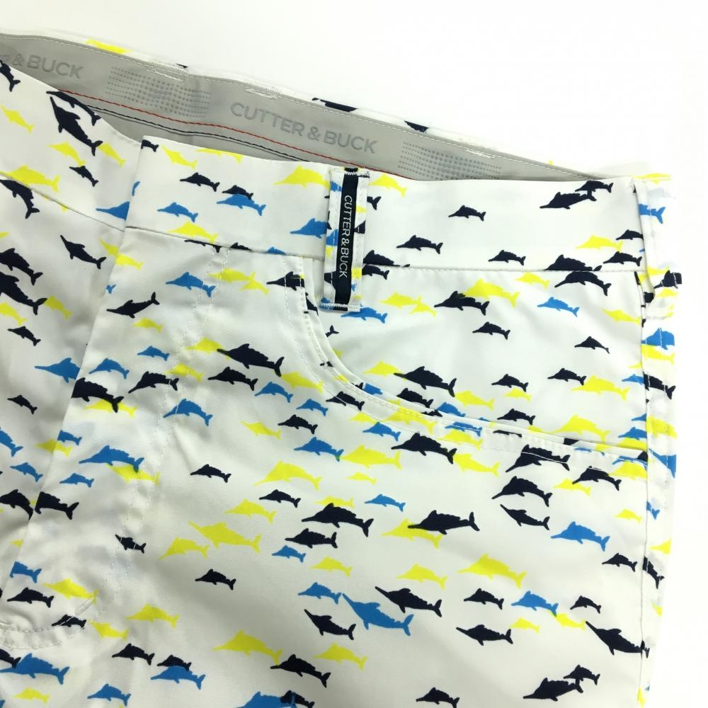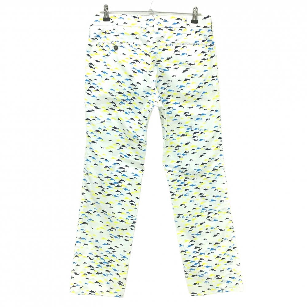 【超美品】カッターアンドバック パンツ 白×イエロー 魚柄 メンズ 82 ゴルフウェア CUTTER&BUCK