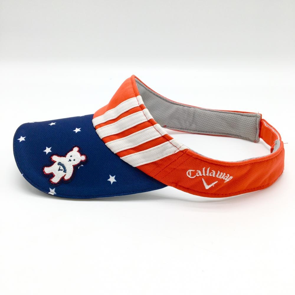 キャロウェイ サンバイザー レッド×ネイビー ベア つば星柄 レディース ゴルフウェア Callaway