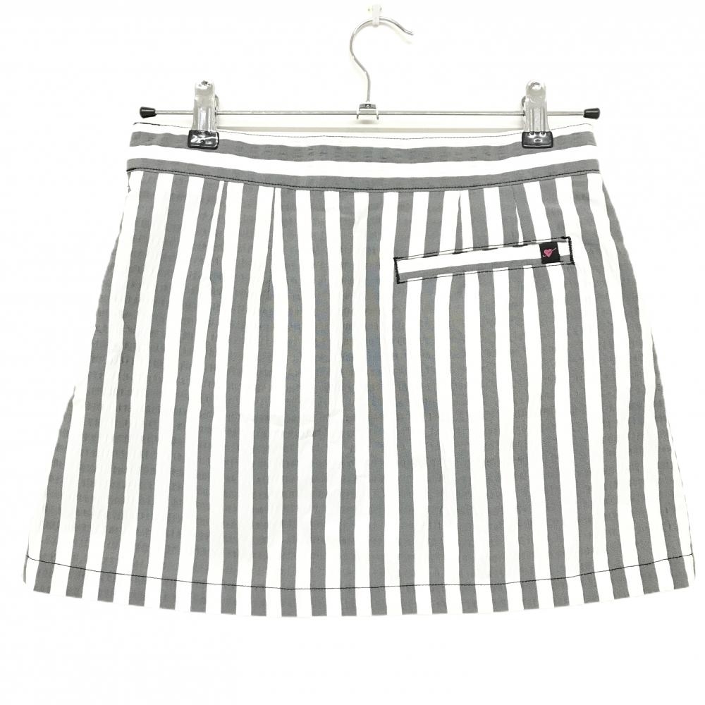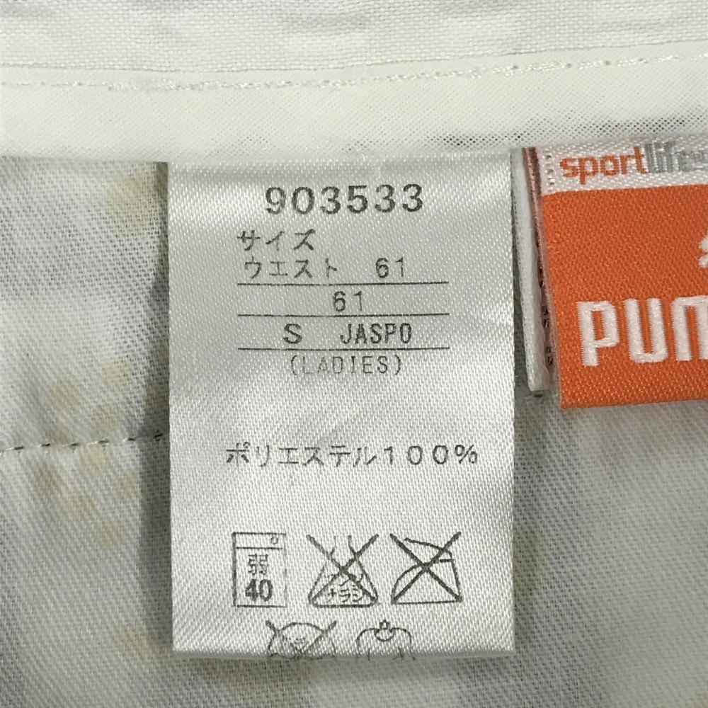 【超美品】プーマ スカート 白×グレー ストライプ サッカー生地 ロゴ刺しゅう レディース S ゴルフウェア PUMA