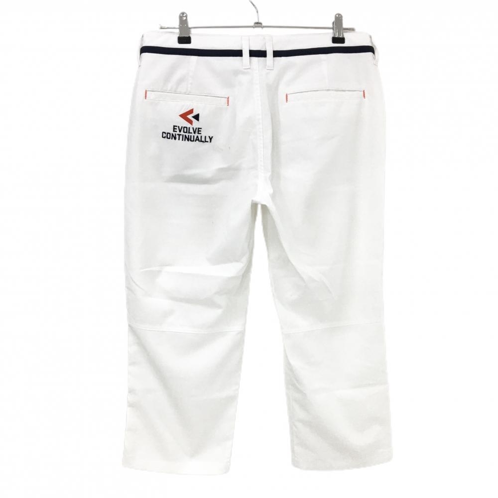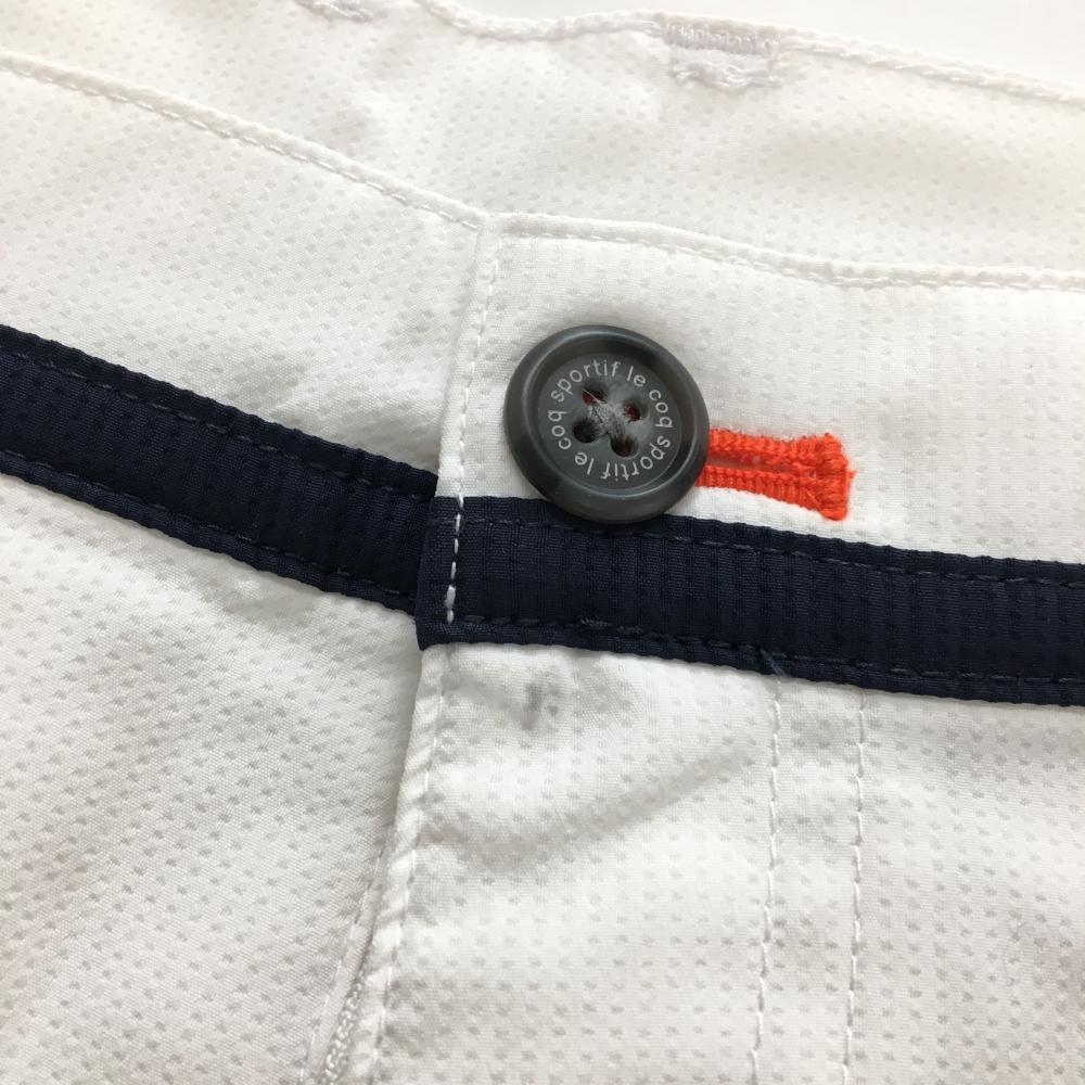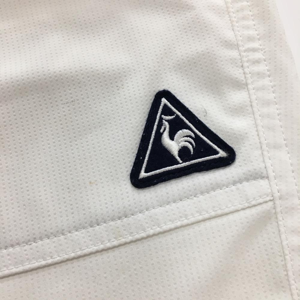 ルコックゴルフ 七分丈パンツ 白×ネイビー ストライプ調地模様 ロゴワッペン メンズ 82 ゴルフウェア le coq sportif