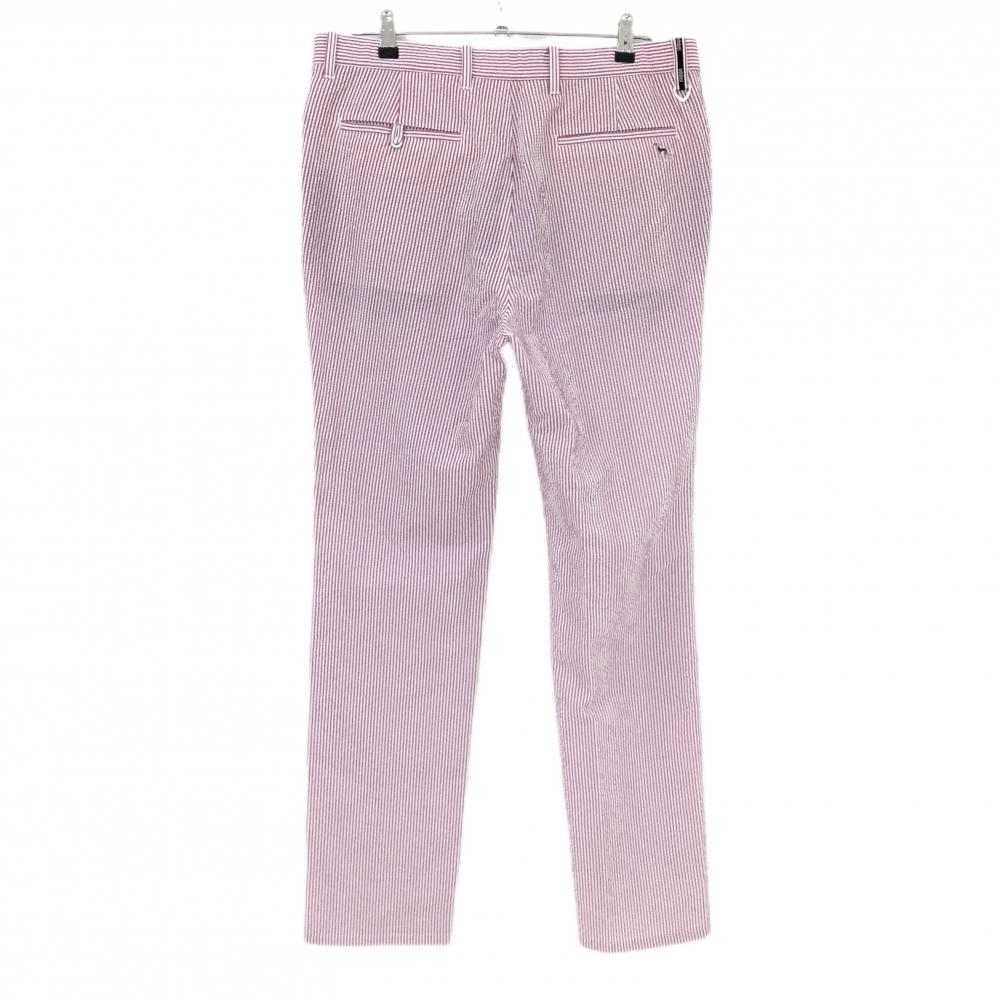 【美品】アダバット パンツ 白×レッド系 ストライプ サッカー生地 ストレッチ メンズ 52(2XL) ゴルフウェア adabat