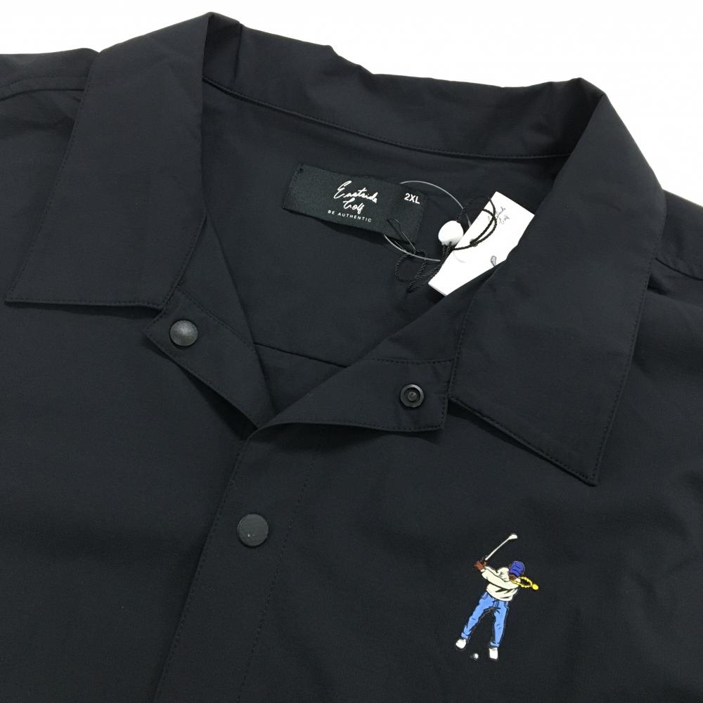 【未使用品】イーストサイドゴルフ 半袖シャツ 黒 ナイロン混 スナップボタン メンズ XL ゴルフウェア Eastside Golf